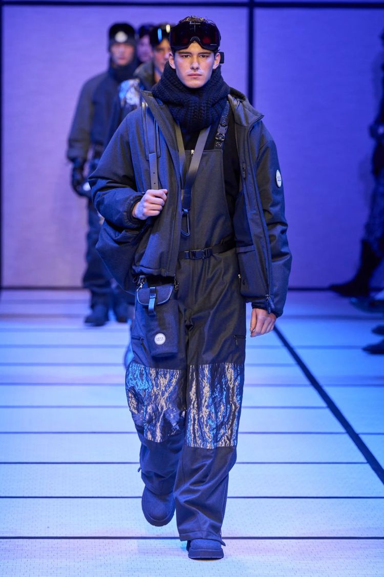 Fashion meets function with outdoor and utility pieces previously reserved for the mountains or forest finding their footing on the runway. Technical jackets with toggles and pulls, pocket-heavy cargo pants and big chunky combat boots all clamoured for the spotlight this season, paired deftly with no-nonsense tailoring for looks that are more city slicker than into the woods. “It’s functional style, upgraded,” says Rydberg. Take, for instance, the expedition-ready looks at Giorgio Armani or the more pared-down utility-wear at Bluemarble.