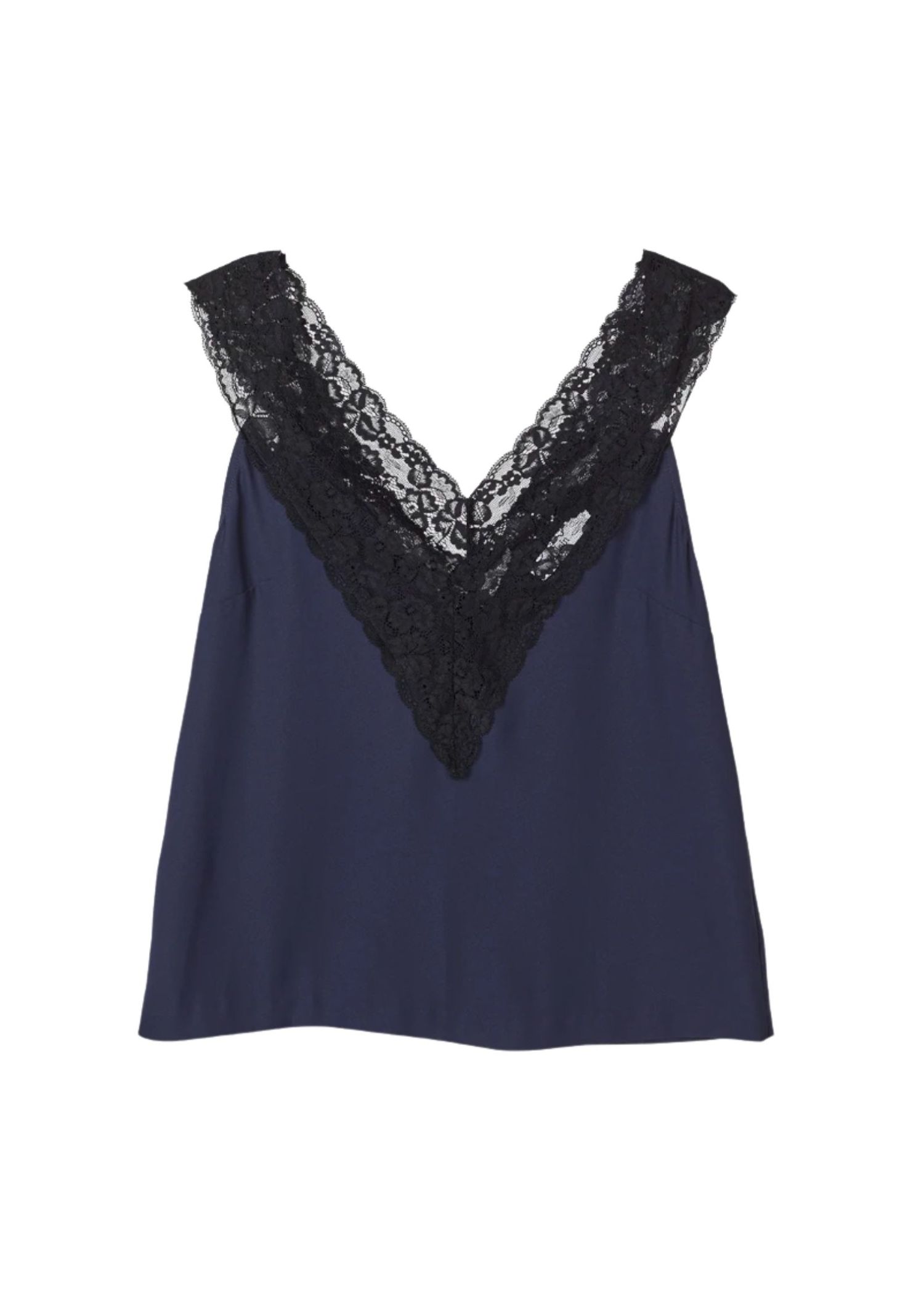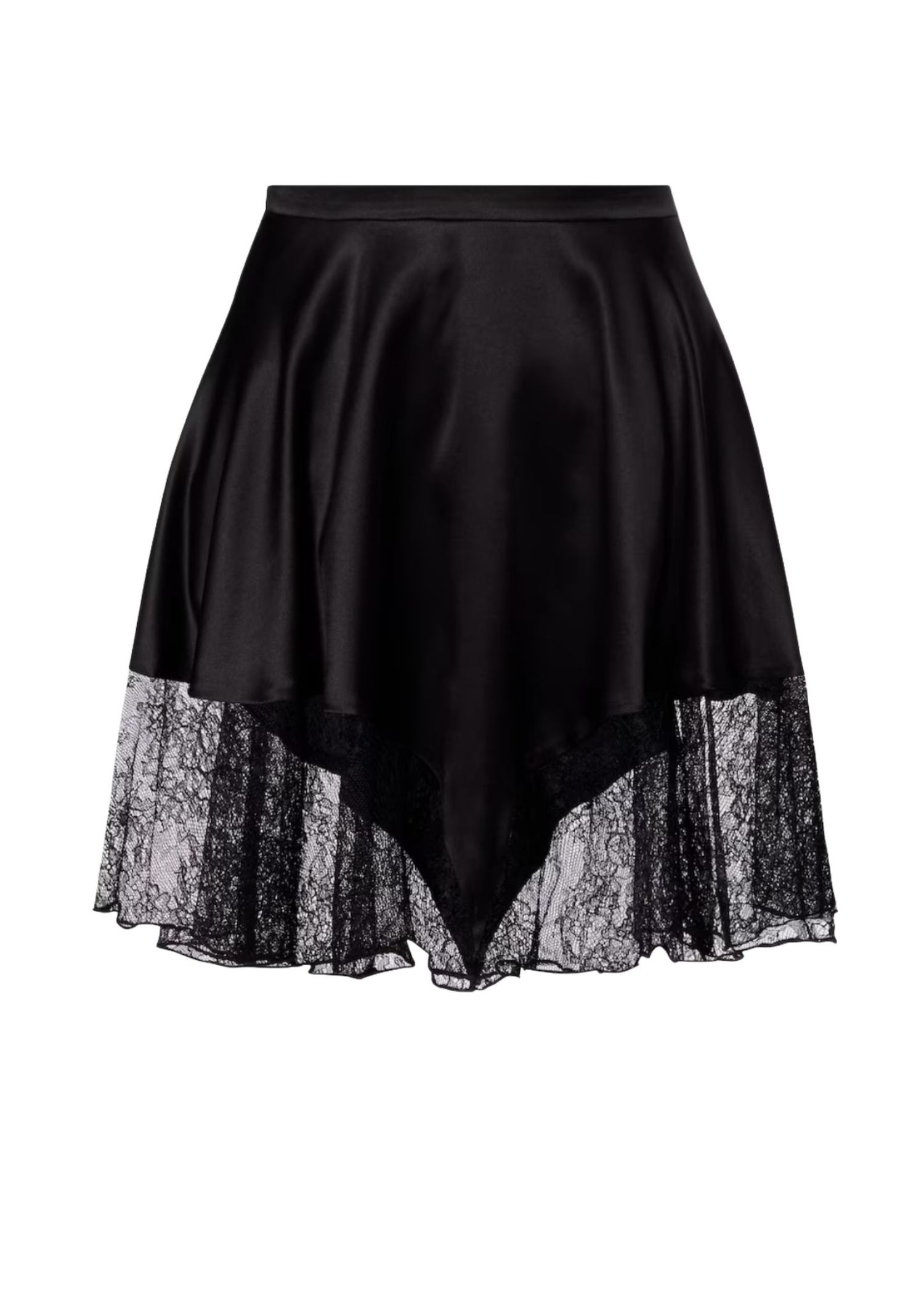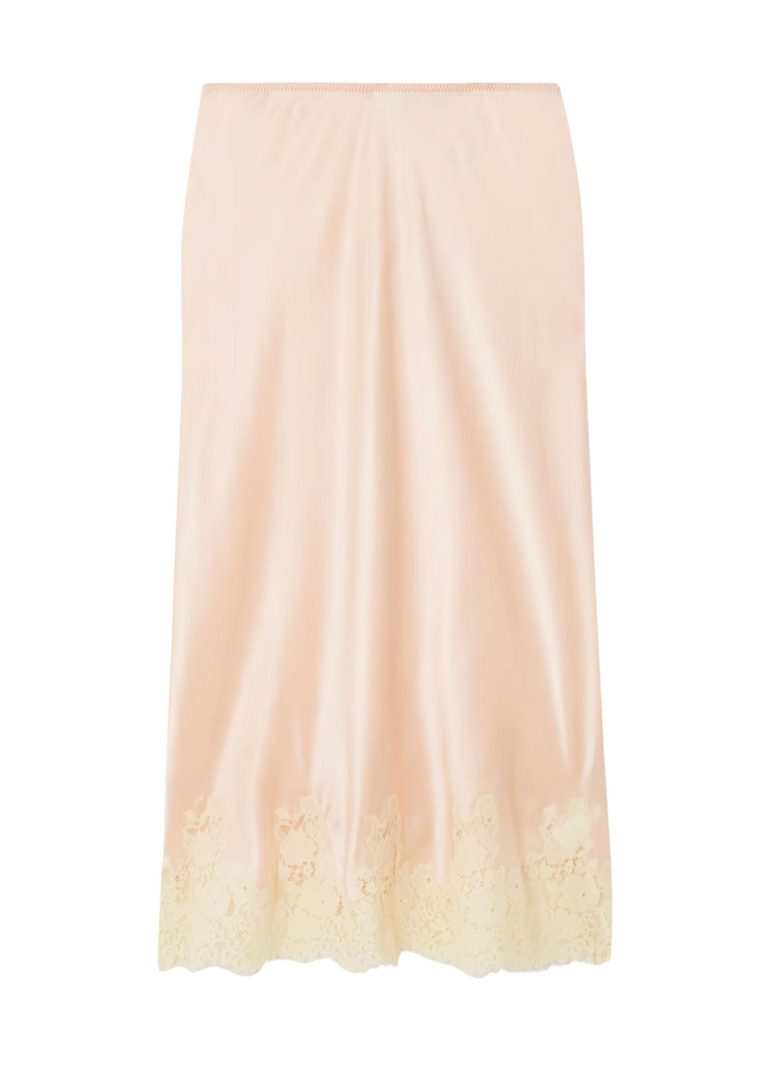 Looking to bring it into your own wardrobe? Try Dôen’s lace-trimmed camisole for layering, Nina Ricci’s satin mini for evening, or Stella McCartney’s lace-panelled jeans for an unexpected twist. For a subtle take, Saint Laurent’s ribbed silk tee is a refined option.