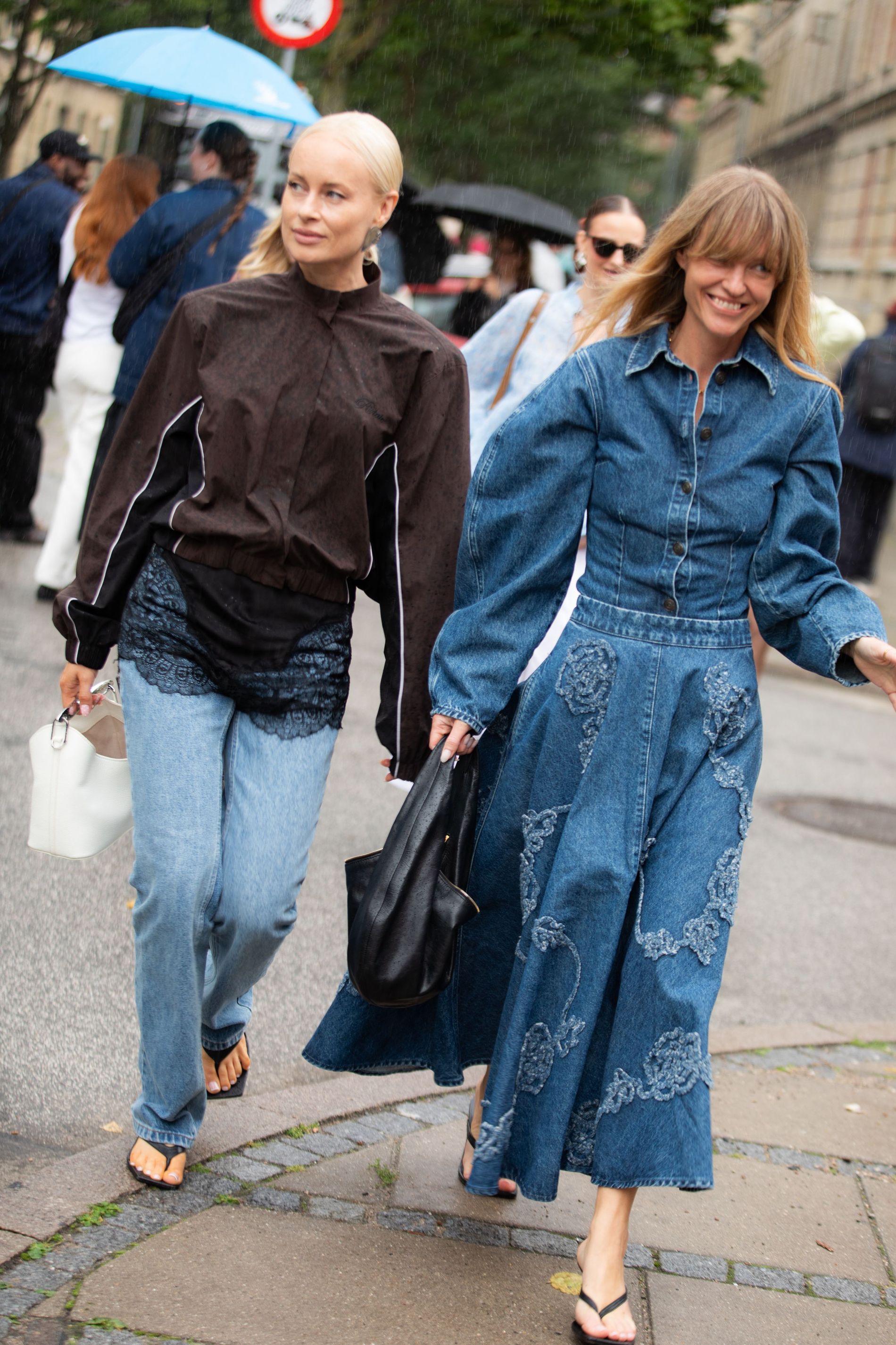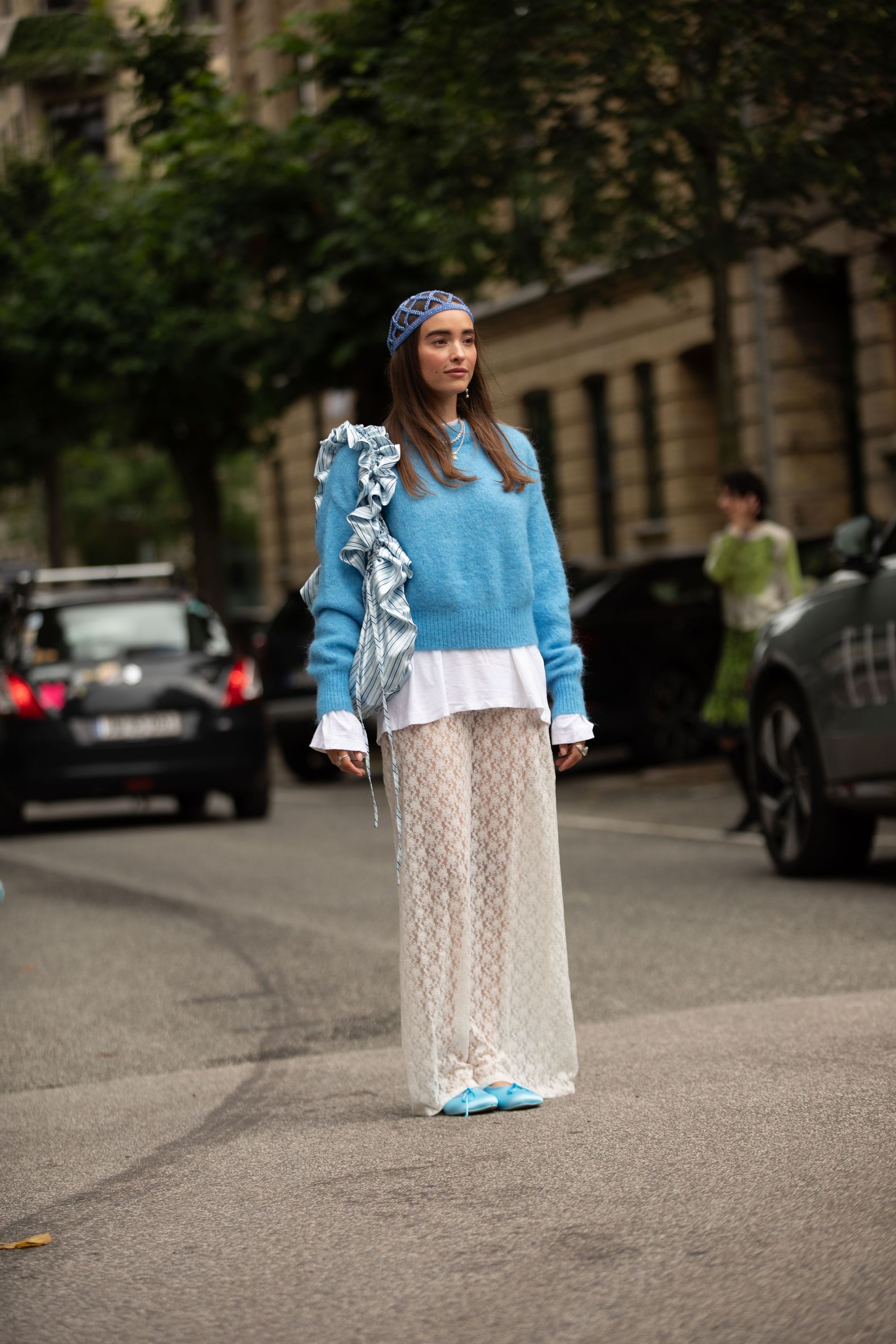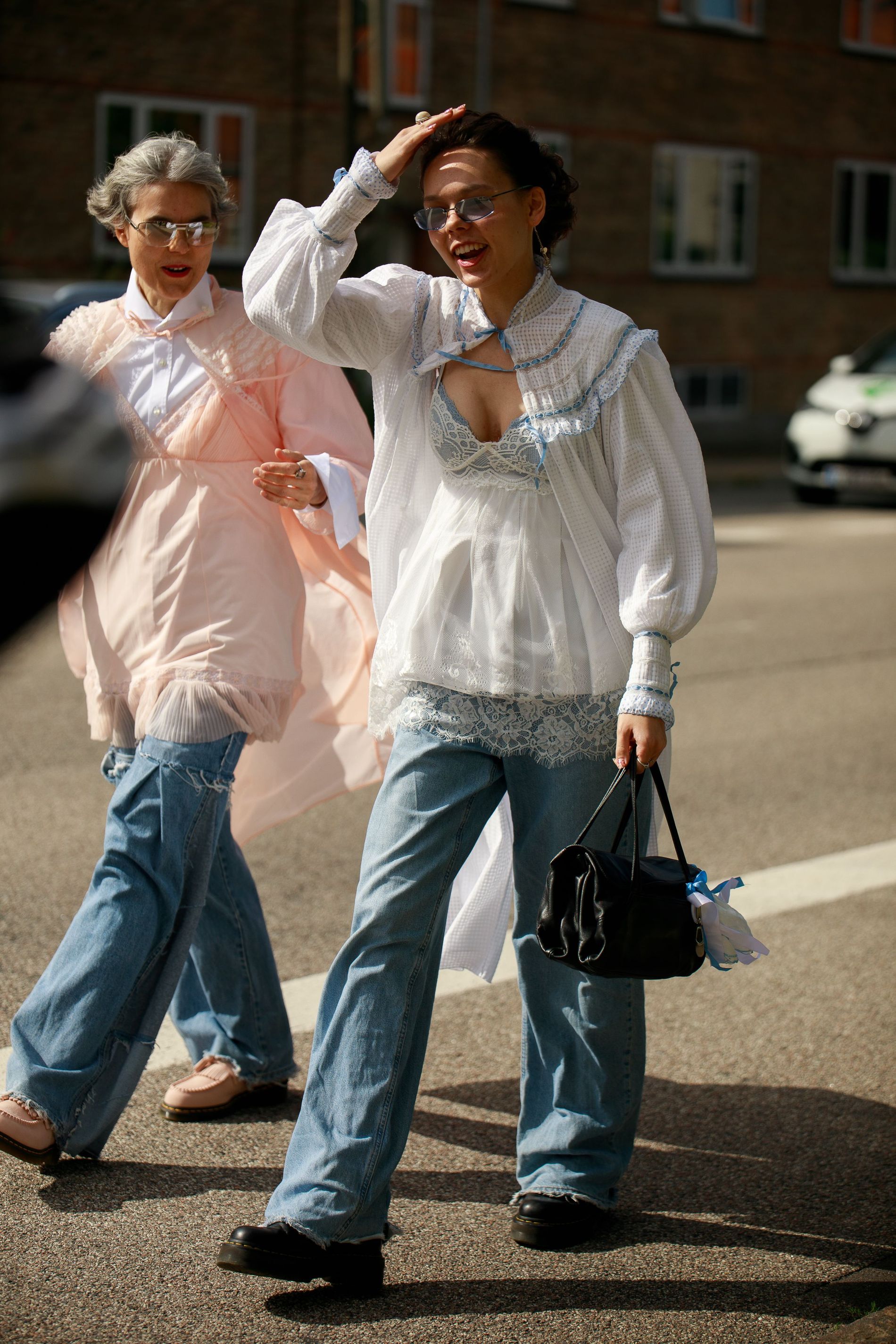 Lace is making a quiet statement on the streets of Copenhagen this season, adding a soft, romantic edge to otherwise simple silhouettes. Whether peeking out from beneath oversized shirts or layered over denim, this delicate detail offers an easy way to elevate everyday dressing. Scandi style stars showed just how versatile lace can be. One look paired a sheer slip with jeans and trainers, while another layered a lace-trimmed camisole beneath a billowy blouse. Even a lace skirt under an oversized sweatshirt felt fresh.