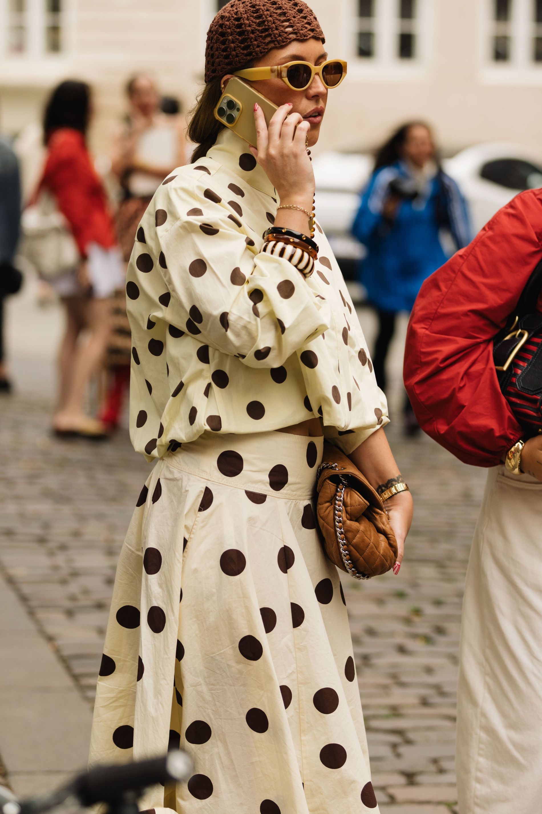 For styling inspiration, look no further than the streets of Copenhagen. Go all-in with a head-to-toe polka dot ensemble, or give the look a modern twist by mixing your dots with contrasting prints like stripes. It’s a bold, unexpected pairing that feels both current and effortlessly cool.