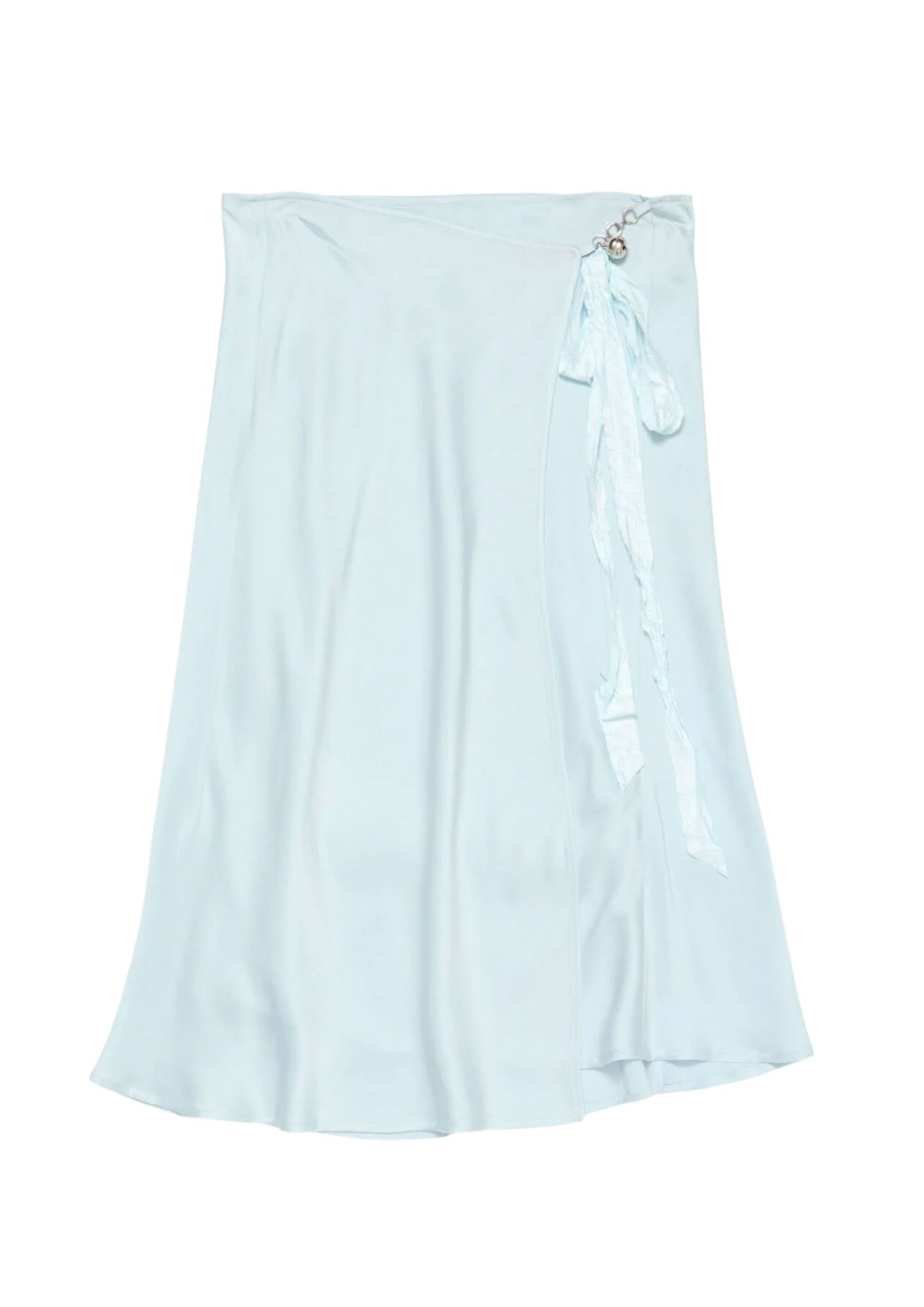 Whether worn head-to-toe or as a single pop of colour, the effect was fresh, modern, and surprisingly easy to wear. Soft sky blue sat beautifully against crisp white and black, while bolder shades made an unexpected pairing with fiery red or blush pink. To channel the look, opt for pieces with texture and tone: a powder-blue knit by Toteme, a pleated wool mini by Loewe, or a slinky skirt in silk. Even a baby-blue polish by OPI can hit the note. After all, there’s no such thing as too much blue this season.