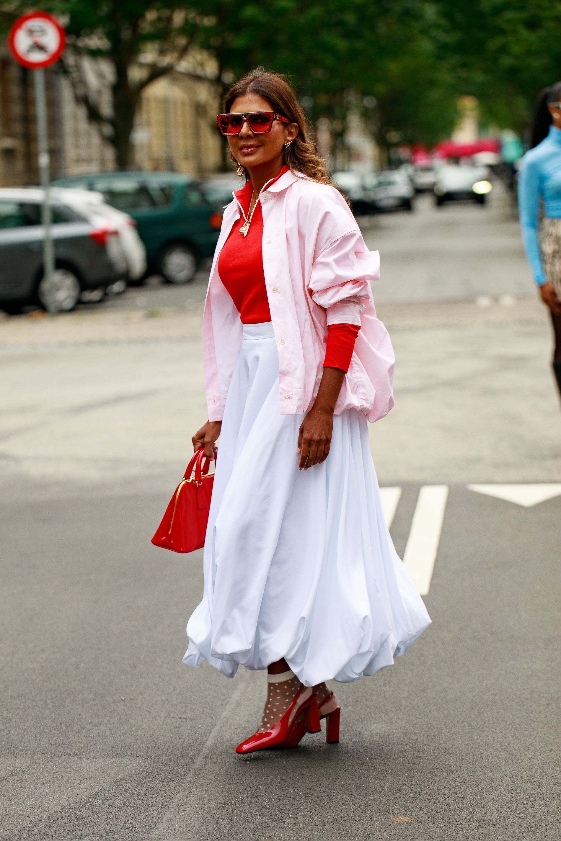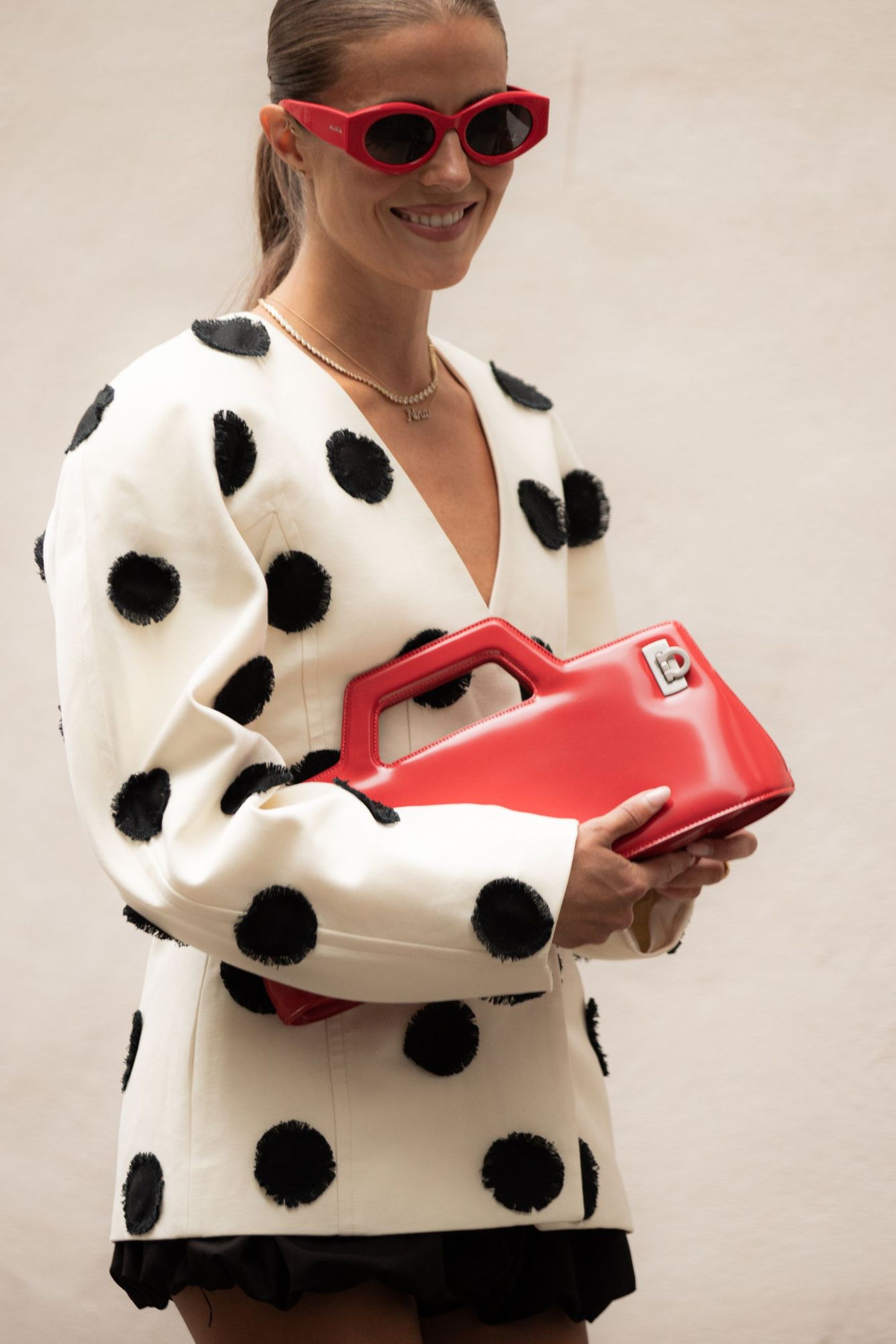 In Copenhagen, the trend has been translating to the streets with a distinct Scandinavian sensibility. Tomato red appeared in bold head to toe looks for maximum impact, or as a striking accent, featured on accessories paired with classic shirts and playfully contrasted with shades of pink and polka dots.