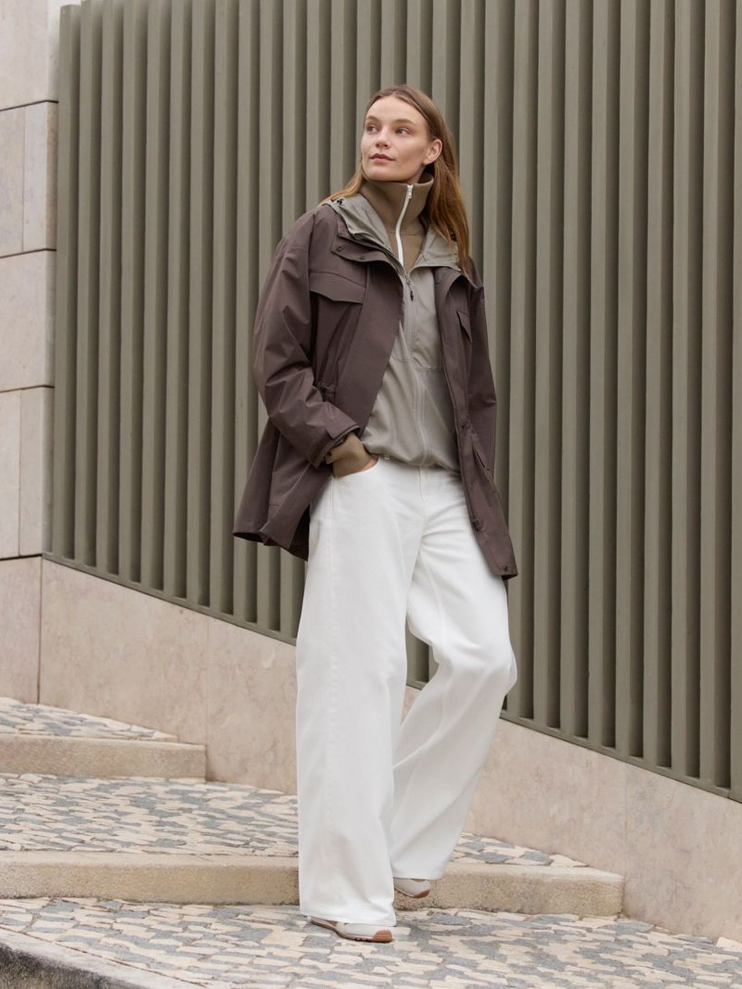 The new SS26 range is no exception. Streamlined, effortlessly elegant, and supremely wearable, the collection excels in easy tailoring – think perfectly weighted trench coats and blazers – and elevated essentials, from finely cut T-shirts to sophisticated dresses. Denim is executed with an understanding of proportion, wide enough for a contemporary cool but never sacrificing shape. Even the leisurewear, including sweatpants and sweatshirts, achieves this sophisticated ease, the trousers cut with a crisp pleat.