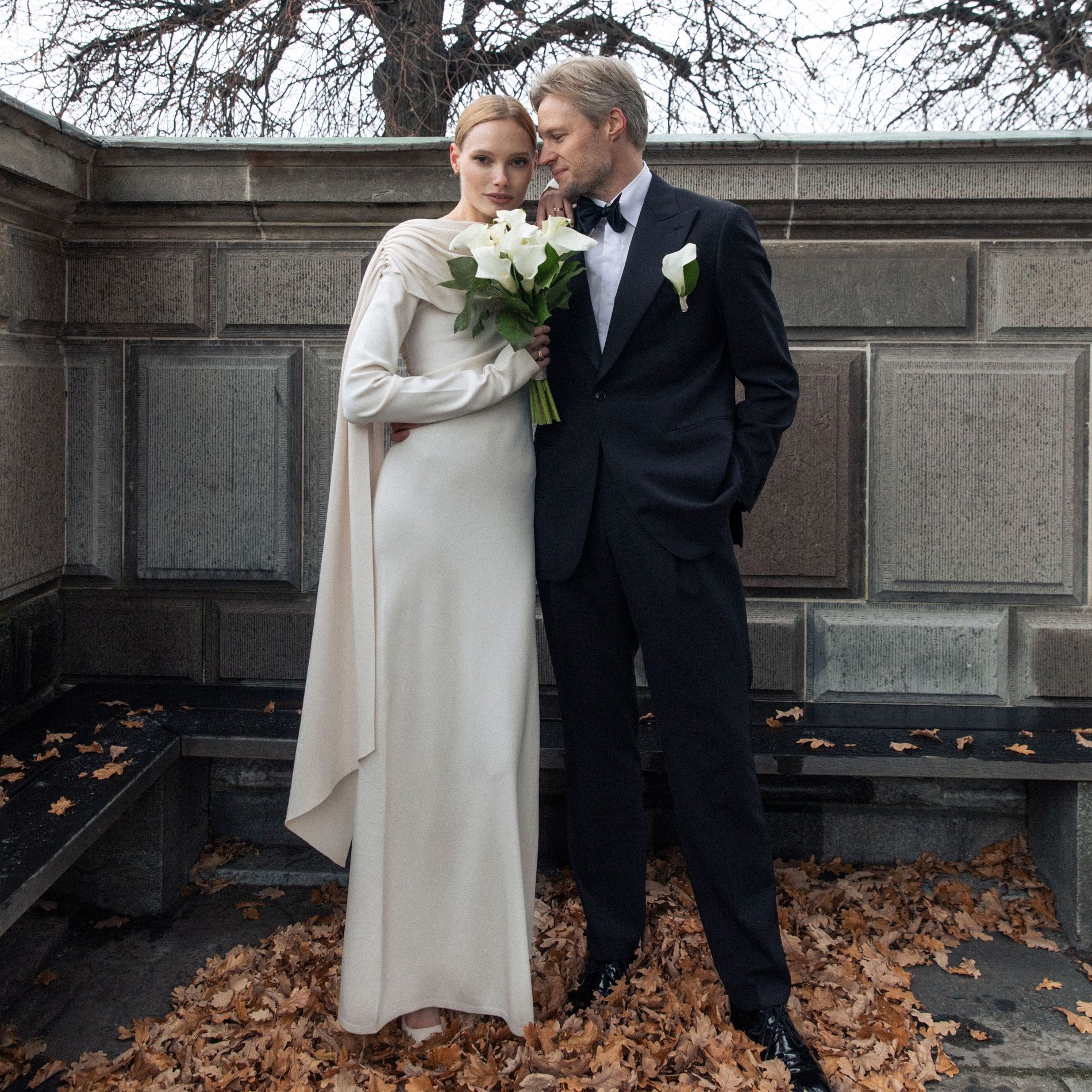 On a cold November day, Swedish couple Elin Skoghagen and Simon Madeling tied the knot in a ceremony at Stockholm's City Hall. What was meant to be a quiet, almost secret ceremony quickly snowballed into a winter wedding that doubled as an accidental fashion shoot – complete with freezing temperatures, passing tourists, and a very patient father acting as on-the-fly production assistant