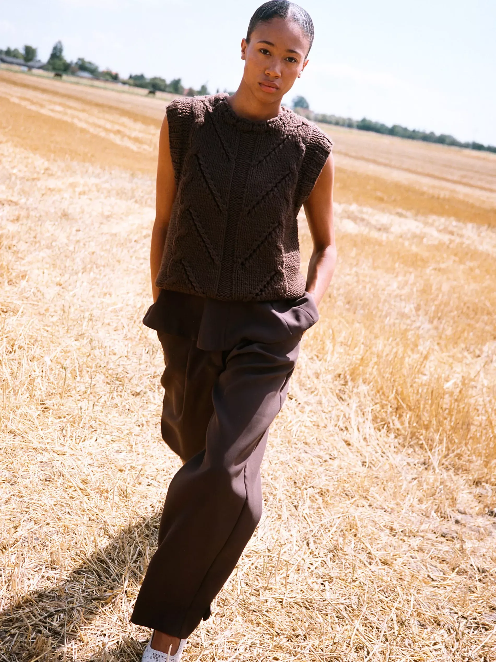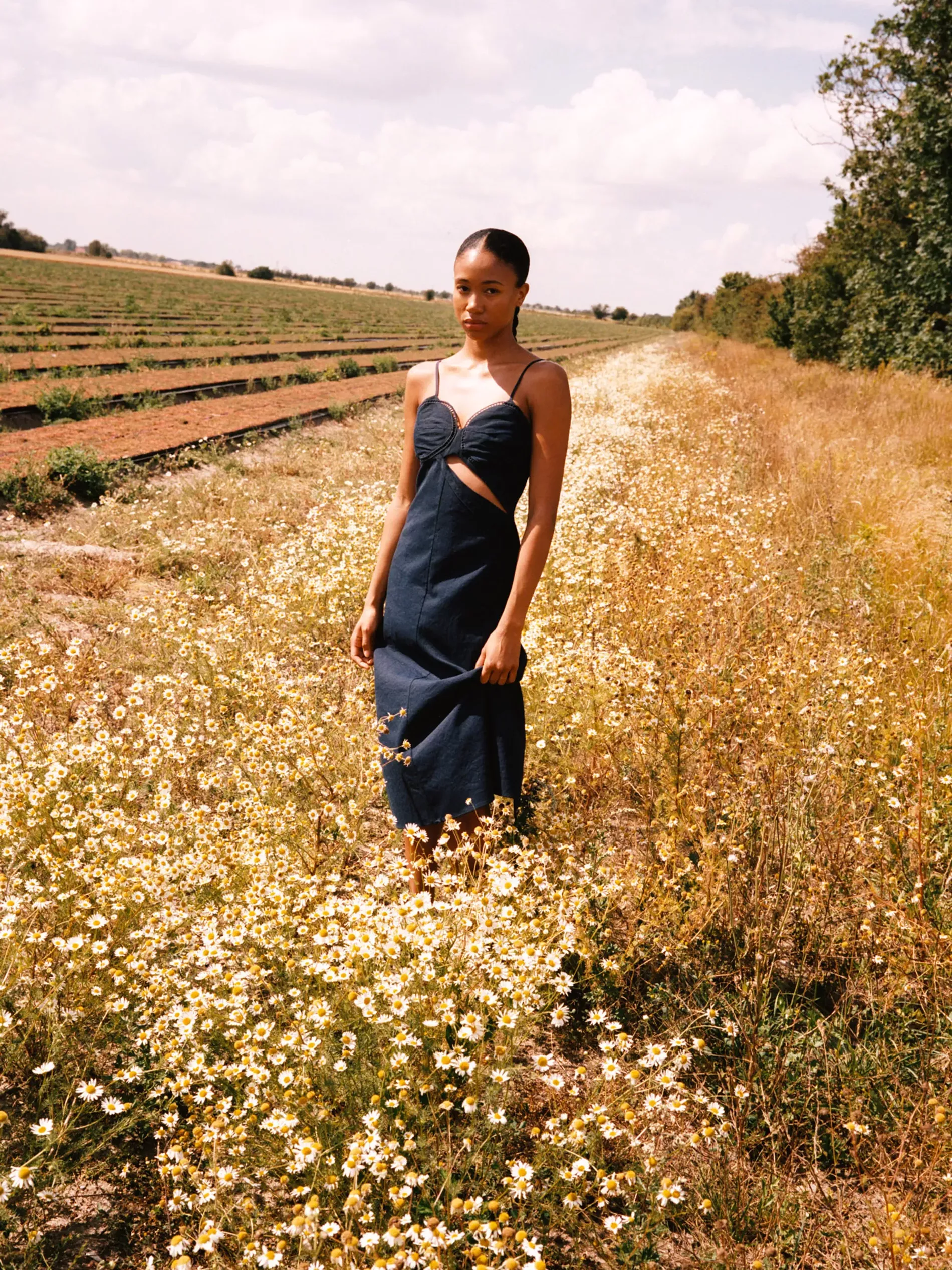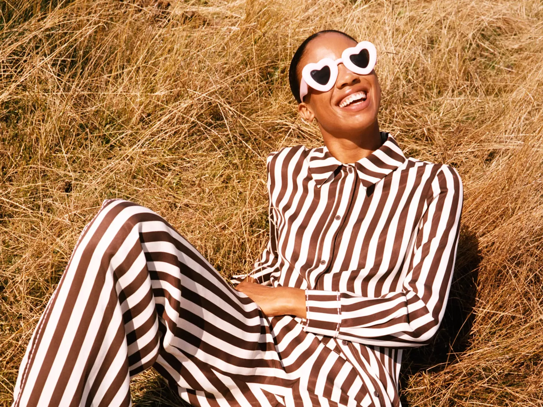 If a heart print was saccharine, a dress with an extended vest top and a flowy skirt was perfectly romantic. The designer claimed a groovy pair of washed jeans with a wide waistband as her own by forming the belt loops on either side of the closing in the shape of an S and a G – standing for Stine Goya but also so good.