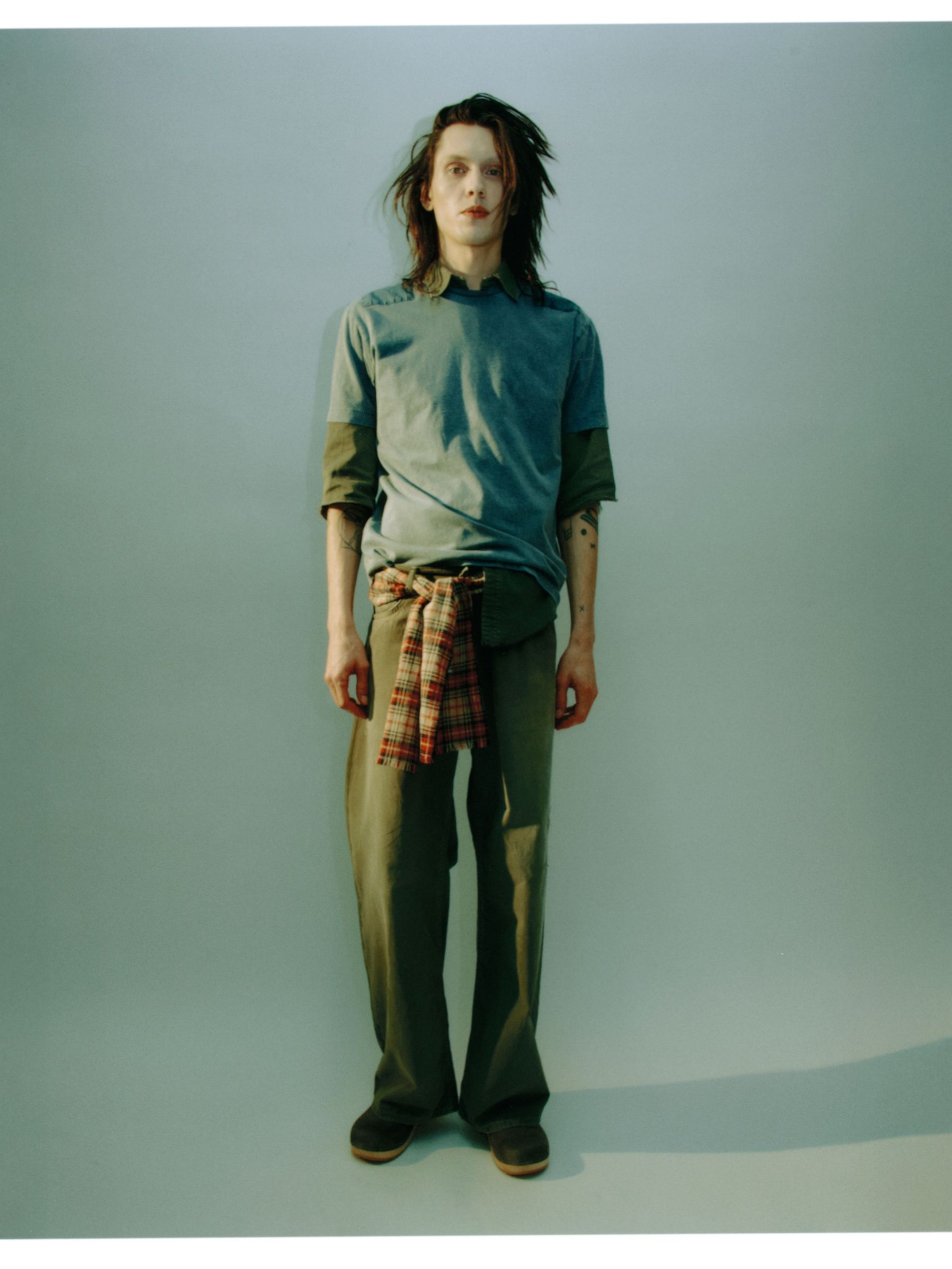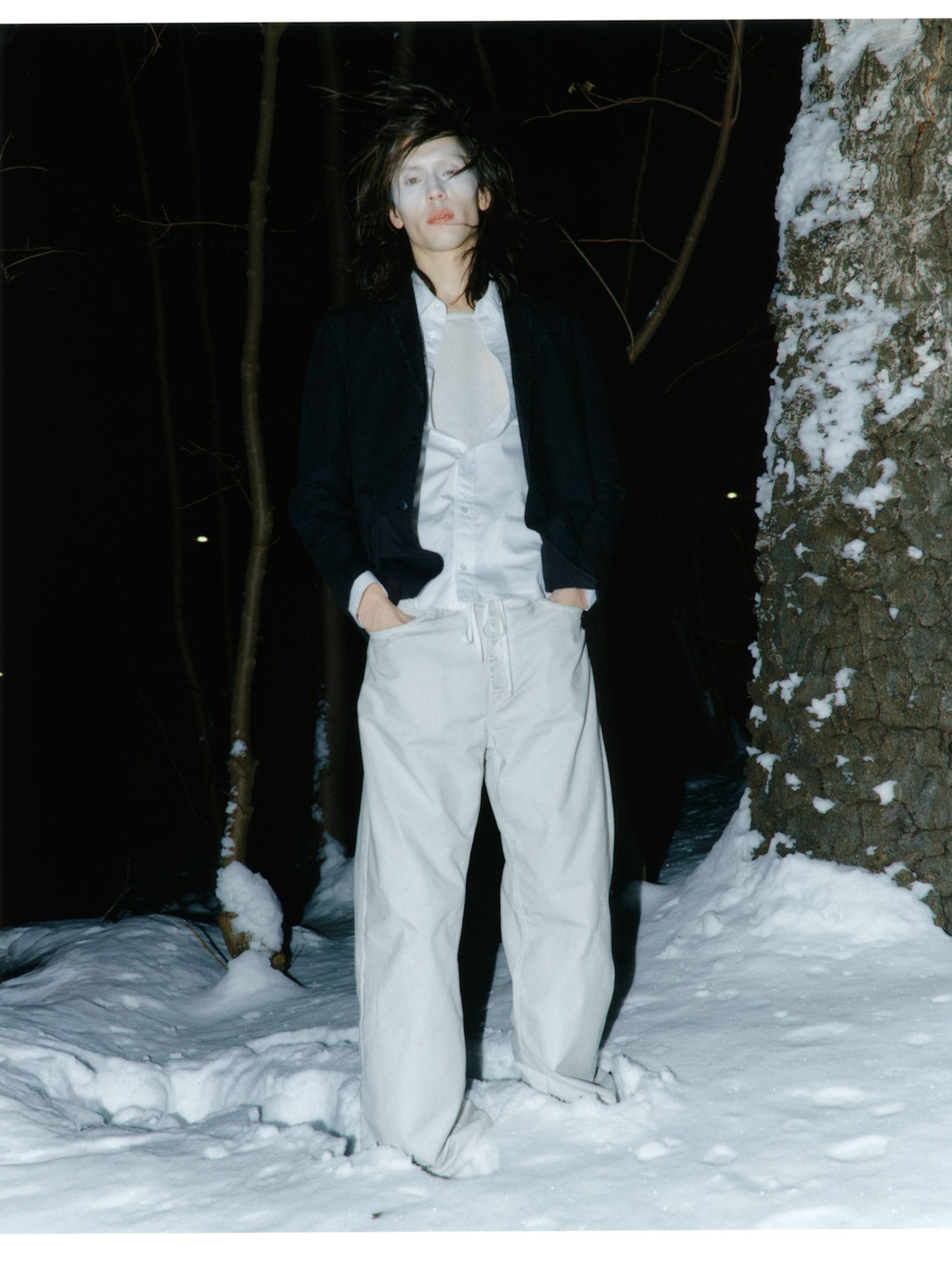 Rendered in a palette that mirrors the landscape – forest greens and earthy browns, the off-white of blankets of snow – the collection is long on the sort of well-worn pieces perfectly suited to off-season seaside life. Think a distressed henley undershirt, a comforting hooded flannel or the sort of hearty knitwear that gets better with age. Even the tailoring is easy breezy and lived-in, the bootcut trousers fashioned with a practical shoelace waistband (a nod to skate culture), the suit jacket distressed just so.