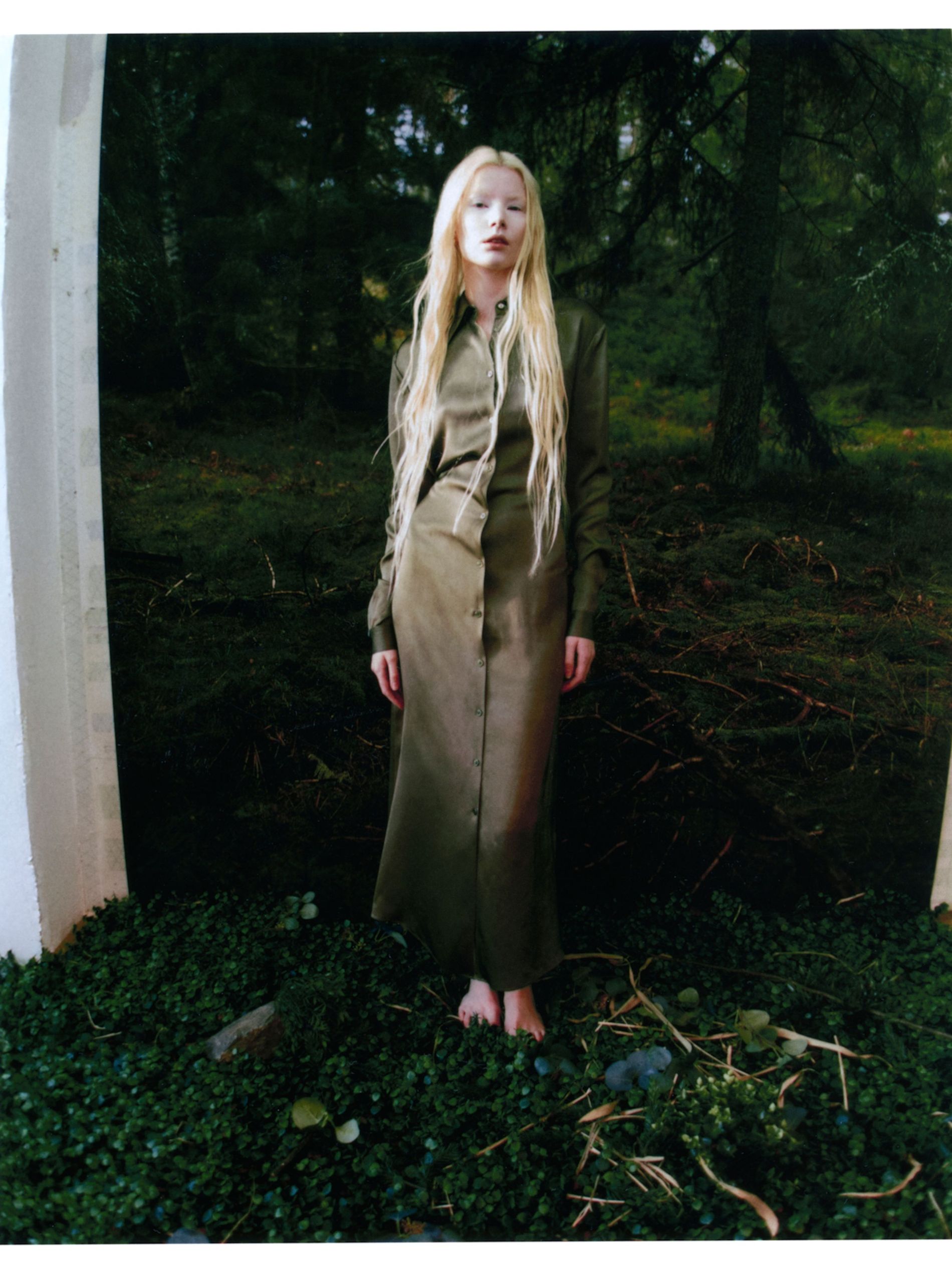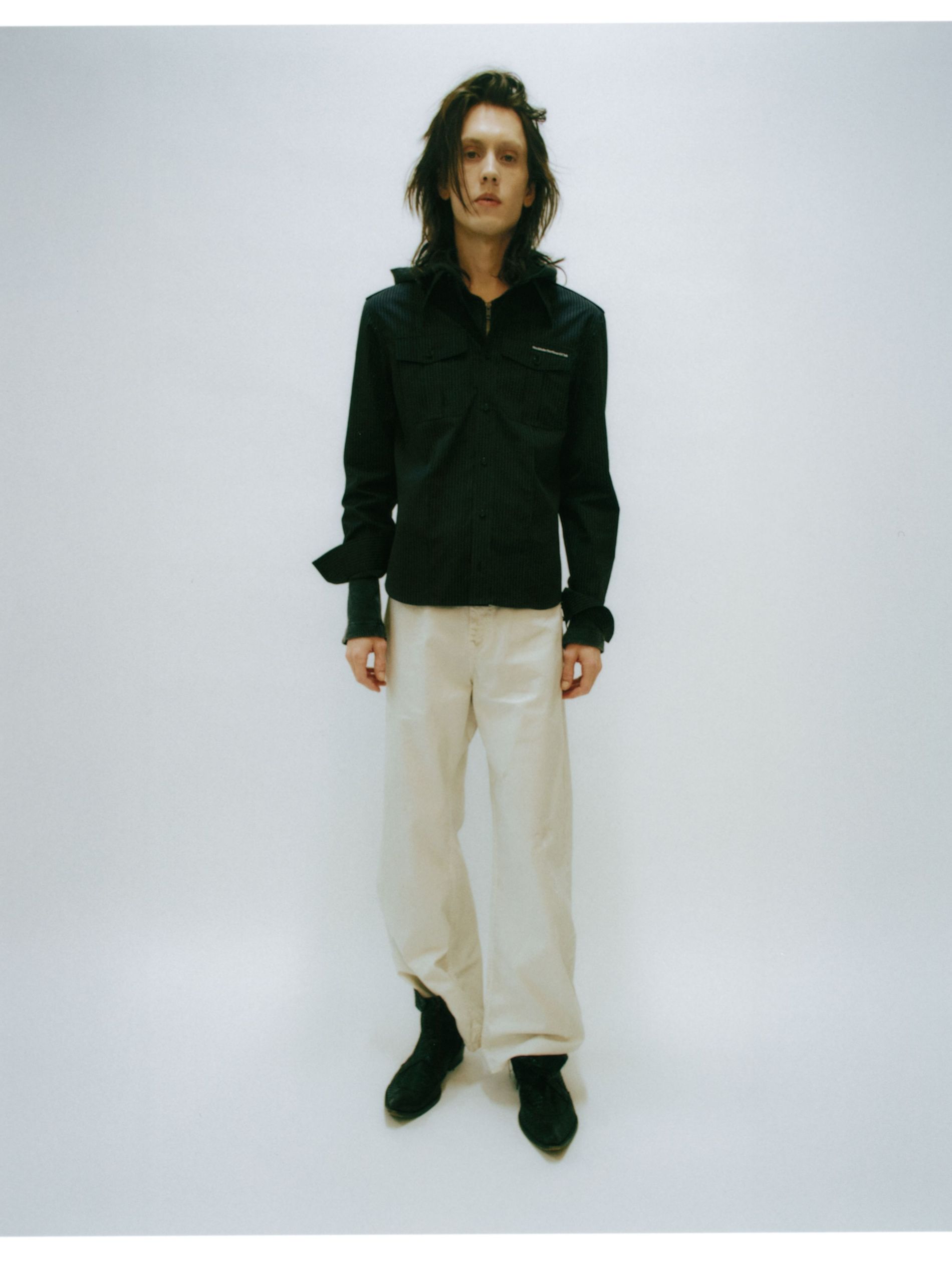 The womenswear, meanwhile, embraces a relaxed sexiness – most notably in a buttoned knit dress and a body-hugging midi skirt. This season, Glad has made a conscious effort not to “slide into a unisex idea”, offering a distinct approach to the women’s clothes. Reworks of old SSC mens pieces find fresh femininity, like the boxy utility jacket, which has been cropped and padded into a soft blouson. "That play of feminine proportions has been a key for this season,” notes Glad.
