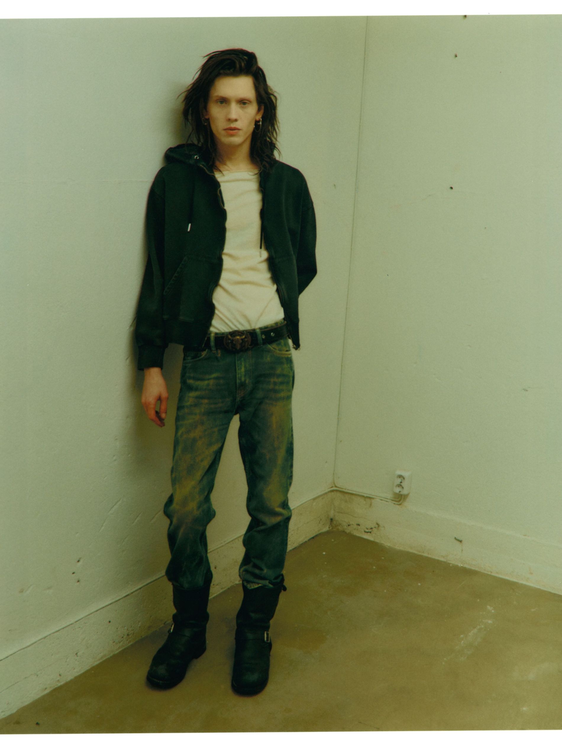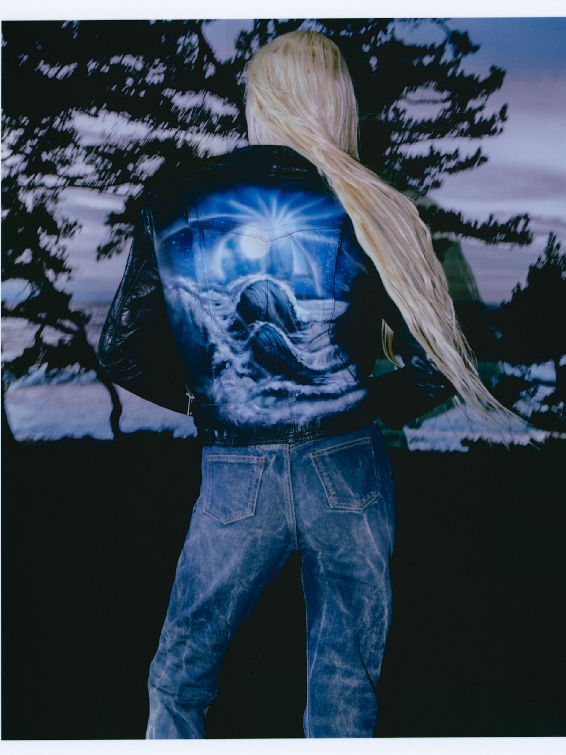 But perhaps the most striking items are those airbrushed vintage leather jackets – distressed Schott Perfectos and vintage leather blazers – featuring swirling depictions of mythological creatures. “We’ve done our own production of leather outerwear previously, but to be frank we all want a leather jacket’s that’s been worn-in,” says Glad, who tapped his go-to “airbrush guy” to create unique artworks that fit the season.