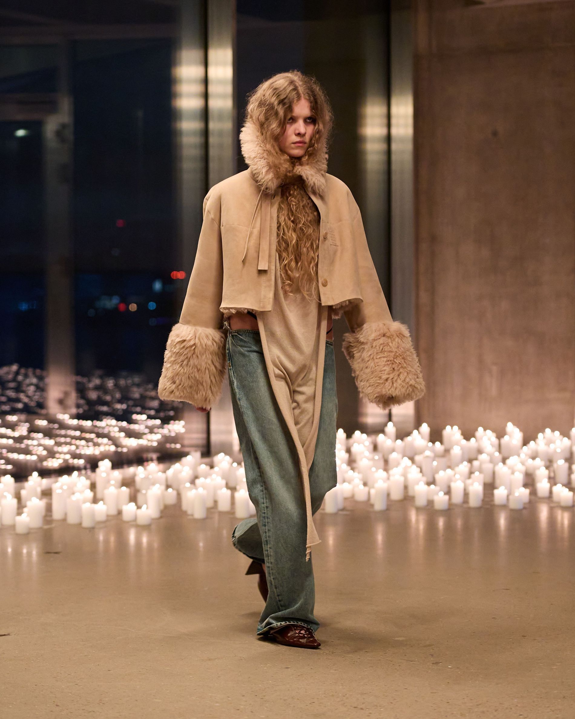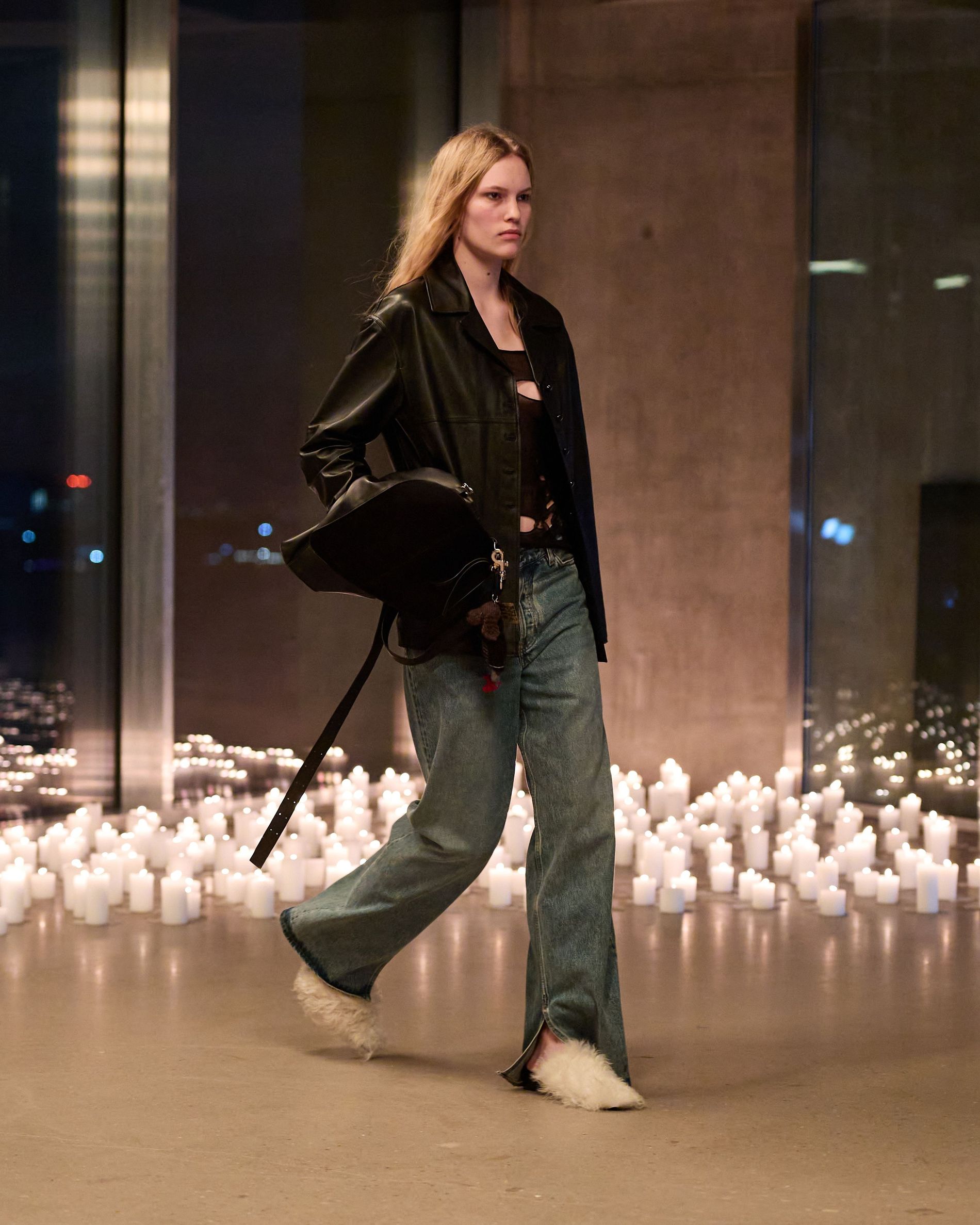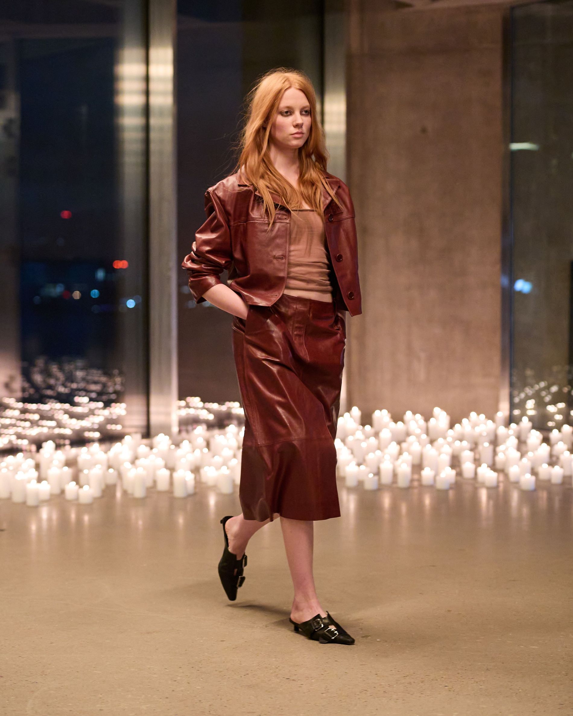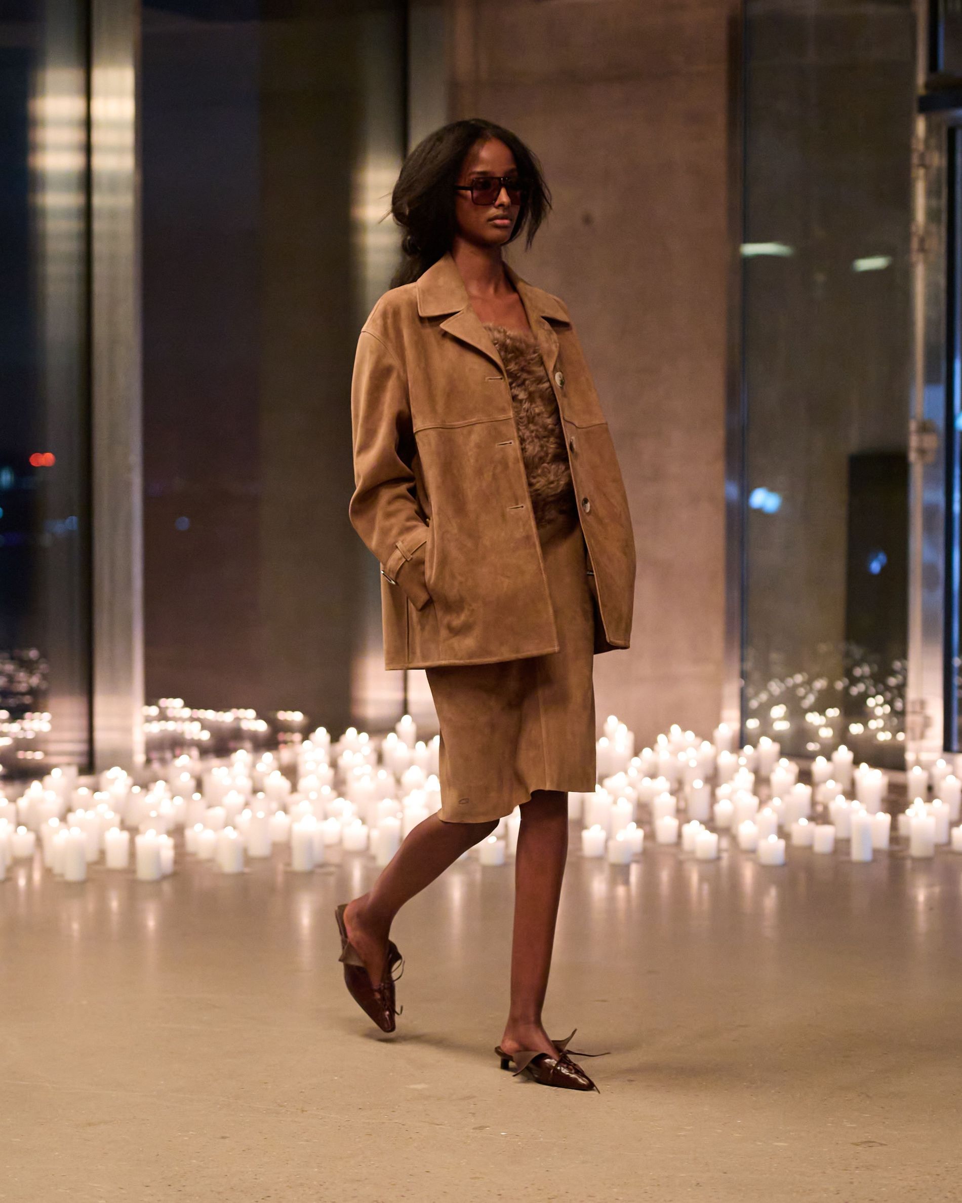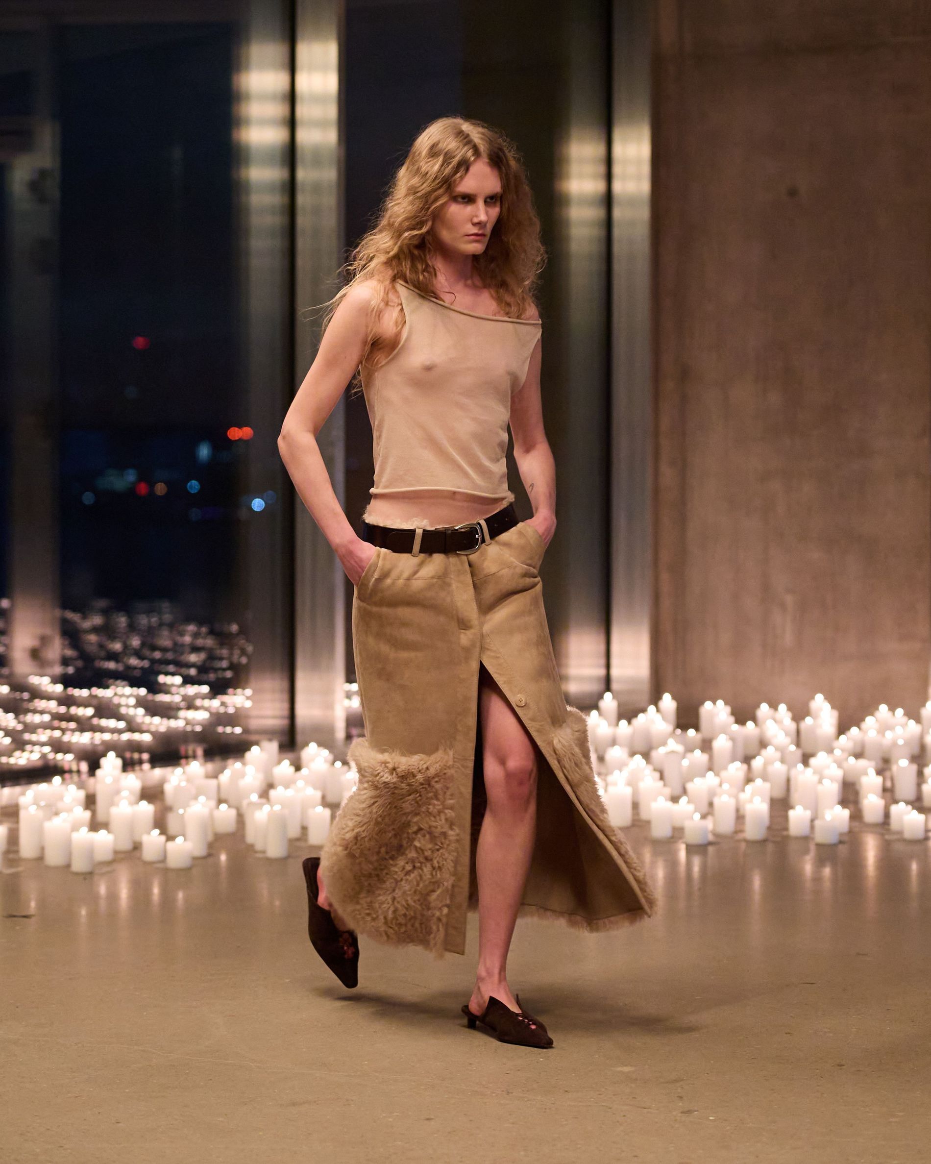 For its CPHFW debut, Swedish brand Studio Constance certainly set a mood. Held in an expressive concrete-floored room with water-facing floor to ceiling windows (the space is within the Bjarke Ingels Group HQ), a sea of candles flickered along one wall as ominous base-heavy music played. “The collection comes from this raw, deep, dark emotional standpoint,” says founder Rebecca Dovenryd Almberg. “It’s inspired by my emotional state right now.”