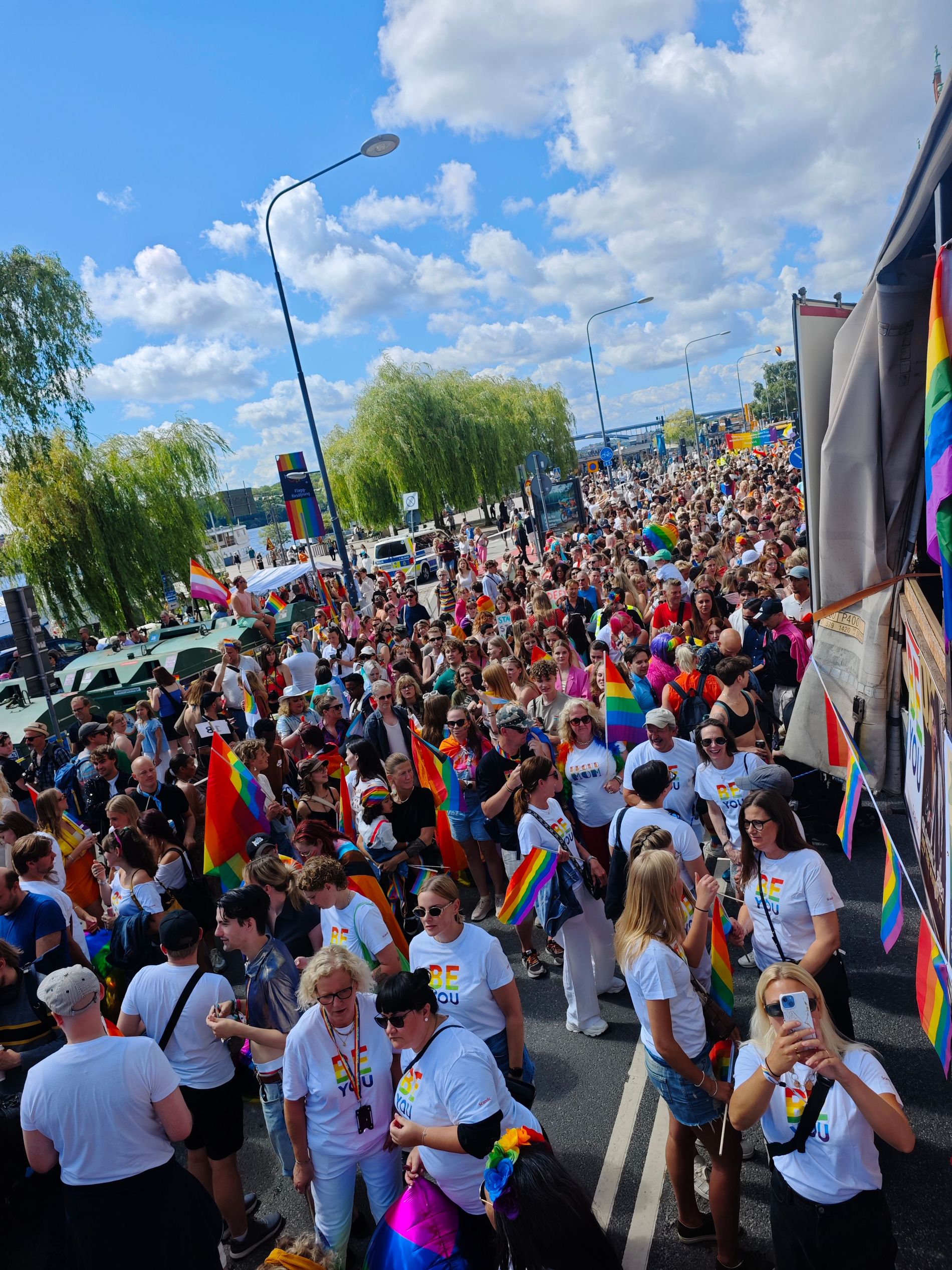 Passing by Gröna Lund and the weather is perfect. Some clouds and sunny. The best parade weather!”