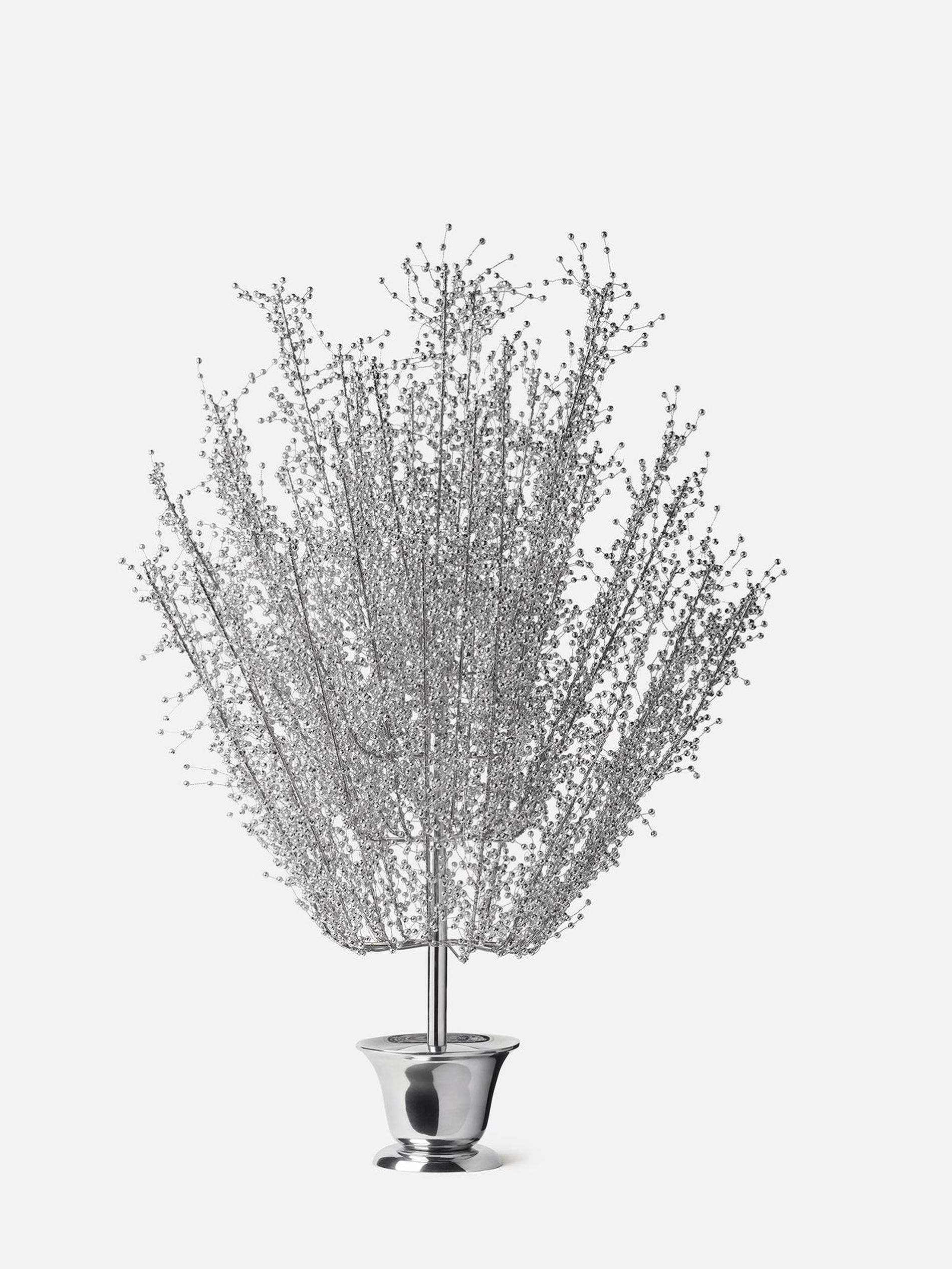 2025’s most dramatic and evocative archival revelation, however, is undeniably 'The Christmas Tree', recreated by Svenskt Tenn from a 1964 capture of Estrid Ericson. In the photograph by world-renowned photographer Lennart Nilsson, Ericson is seen in her studio, arranging silver- and gold-foiled branches into a tree. This year’s creation transforms her vision into a freestanding, nickel-plated brass sculpture with shimmering beads. A firework of light-catching branches, the piece is just as suited to New Year’s festivities as it is to Christmas morning.