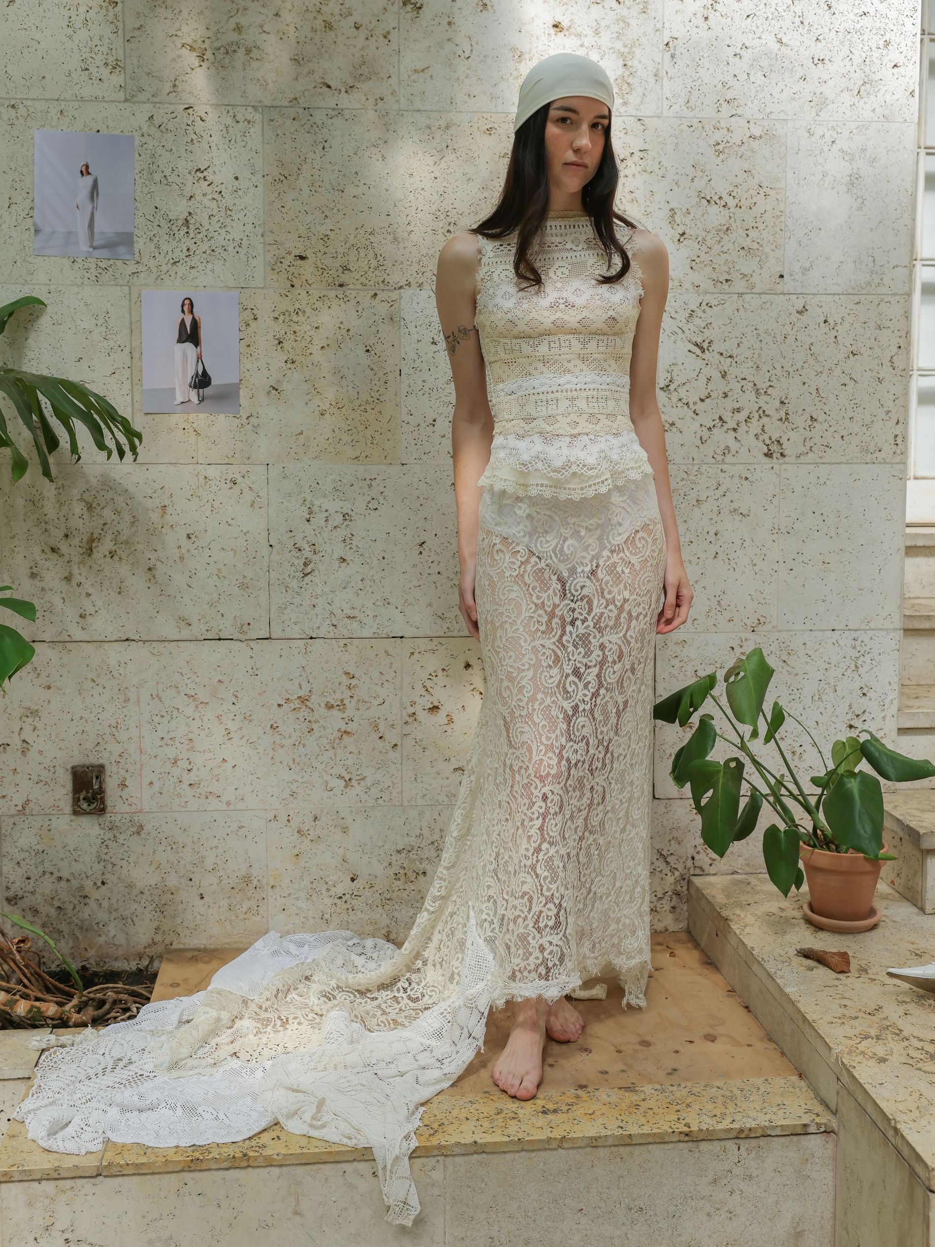 The collection draws emotional and aesthetic inspiration from figures such as the ever-enigmatic Little Edie and the fiercely unapologetic Sinéad O'Connor - women who were marginalised or ridiculed for daring to live and speak their truth. By channelling their legacy, Taus weaves a narrative that challenges the binary between reverence and rebellion, elegance and eccentricity, history and now. Through fabric, silhouette, and story, the label pays tribute to those who defied convention - not as a nostalgic glance backwards but as a powerful reminder that the most radical thing a woman can do is to be entirely herself.