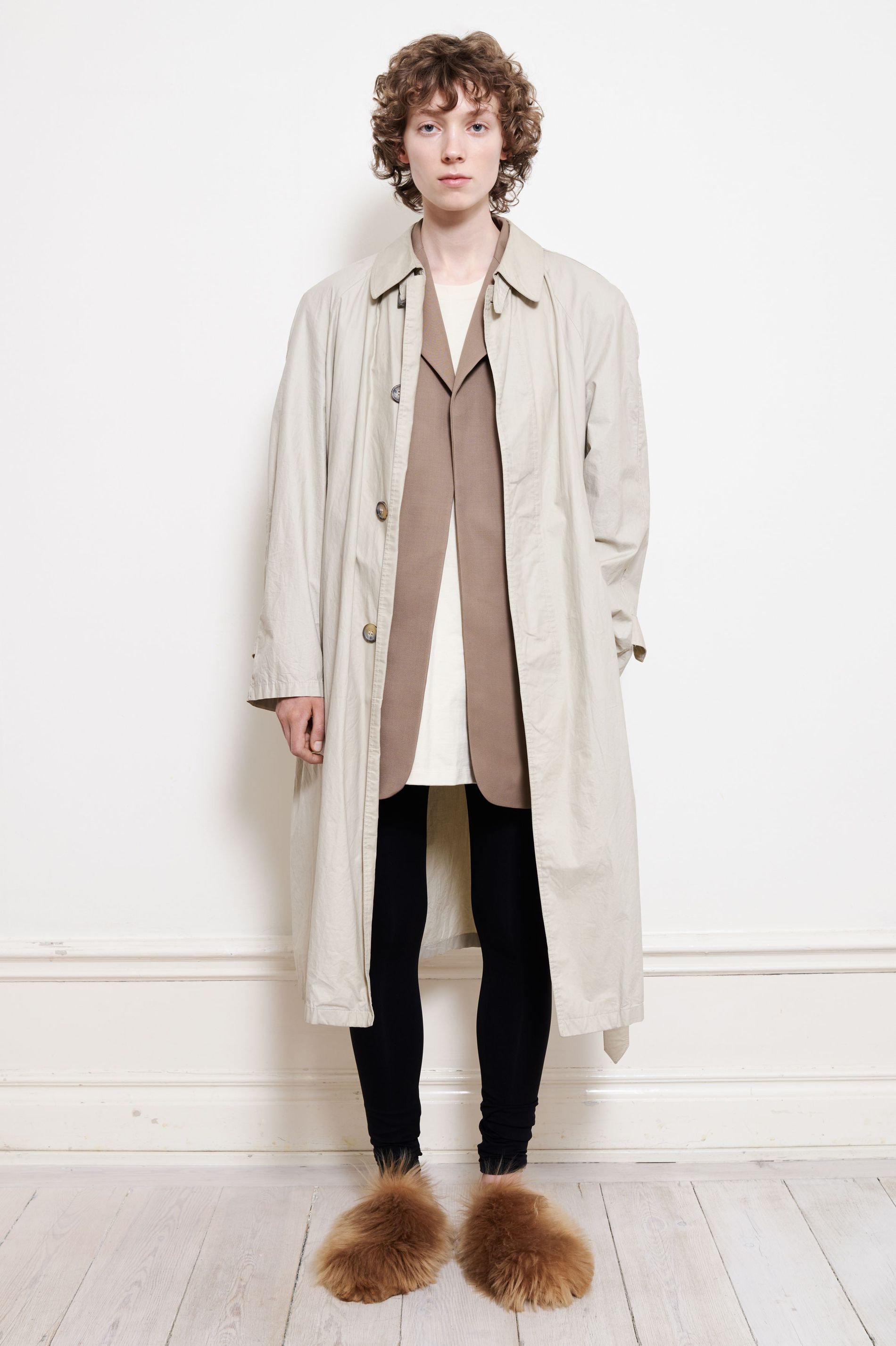 The collection is a lesson in layering, cut from the sombre shades of beige, black and cream – all of the necessary neutrals. Soft leggings are paired with long-line T-shirts, a billowing blazer, and a crisp cream trench coat. Polished is the perfect adjective to describe the lineup, sleek lines in leather skirts and tucked in tops. A gathered silk top and dress finished off the everyday ensembles, lending the lineup a sense of occasion.