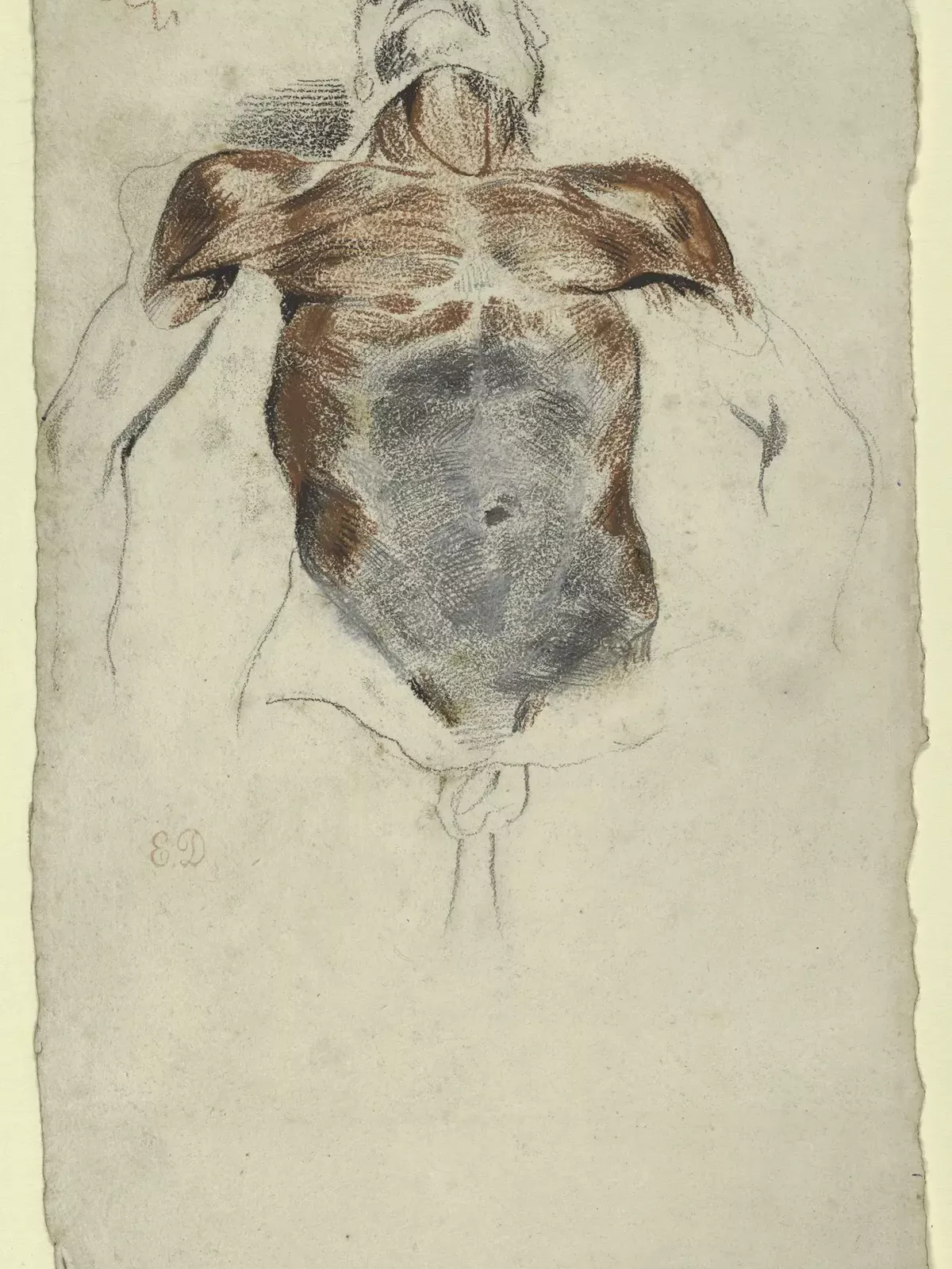 Ecorché: Torso of a Male Cadaver, Eugène Delacroix (French, 1798–1863), 1828?; Gift from the Karen B. Cohen Collection of Eugène Delacroix, in honor of William M. Griswold, 2013 (2013.1135.23). . Photo: The Metropolitan Museum of Art
