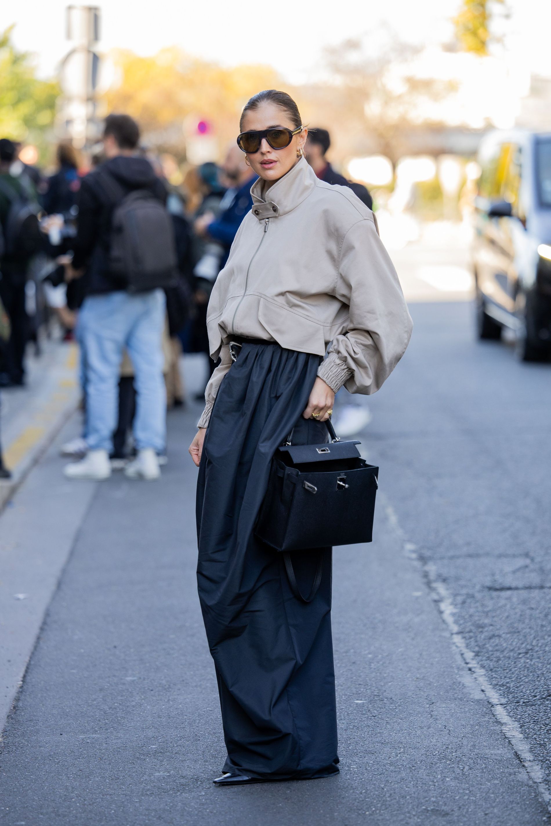 Loreen looked ready to close the Vetements show in Paris herself, draped in dark layers and mystery. Meanwhile, colour queen Nina Sandbech, known for her fearless palette and sculptural accessories, stunned in a sweeping black cape and a striking violet Maison Krasnova hat. On those same Parisian streets, fellow Norwegian darling Darja Barannik kept it sharp in a grey zip-up jacket and navy wide-leg trousers: proof that Norwegian minimalism means business.