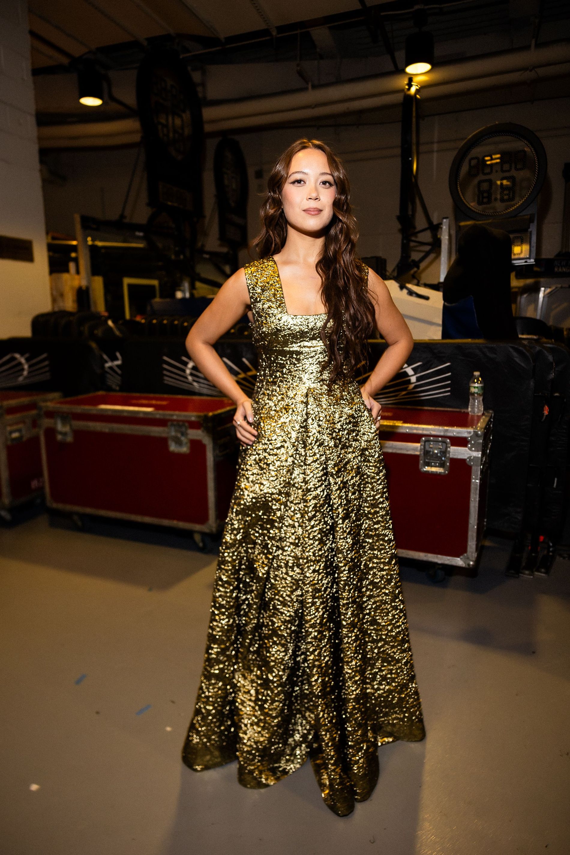 As the holiday season edges closer, Scandinavian style stars are already setting the tone for festive dressing. Queen Mary of Denmark stepped out in a celebratory velvet suit while attending an event at Copenhagen’s Opera House. Across the Atlantic, at Madison Square Garden’s annual Jingle Ball, Laufey wore a gold-toned maxi dress that delivered understated glamour.