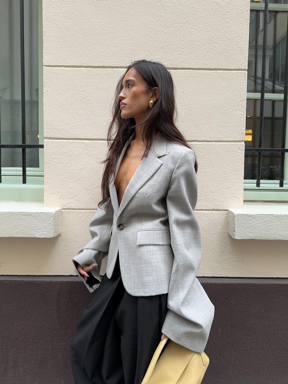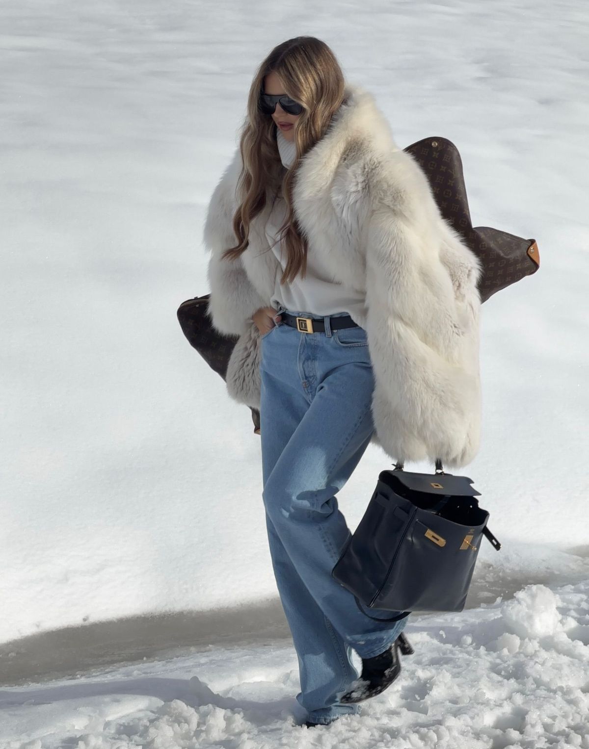 For those heading towards colder climes, Hannah Schönberg offered mountain-ready inspiration during her trip to the Alps, pairing a cosy knit with classic jeans and an oversized, plush jacket. Meanwhile, Danish tastemaker Amalie Bladt served a reminder that sometimes a simple grey blazer is all you need.