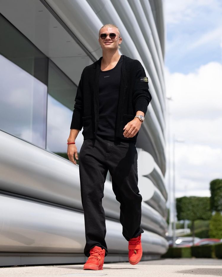 What: Stone Island cardigan, Nike Air Yeezy 2 sneakers