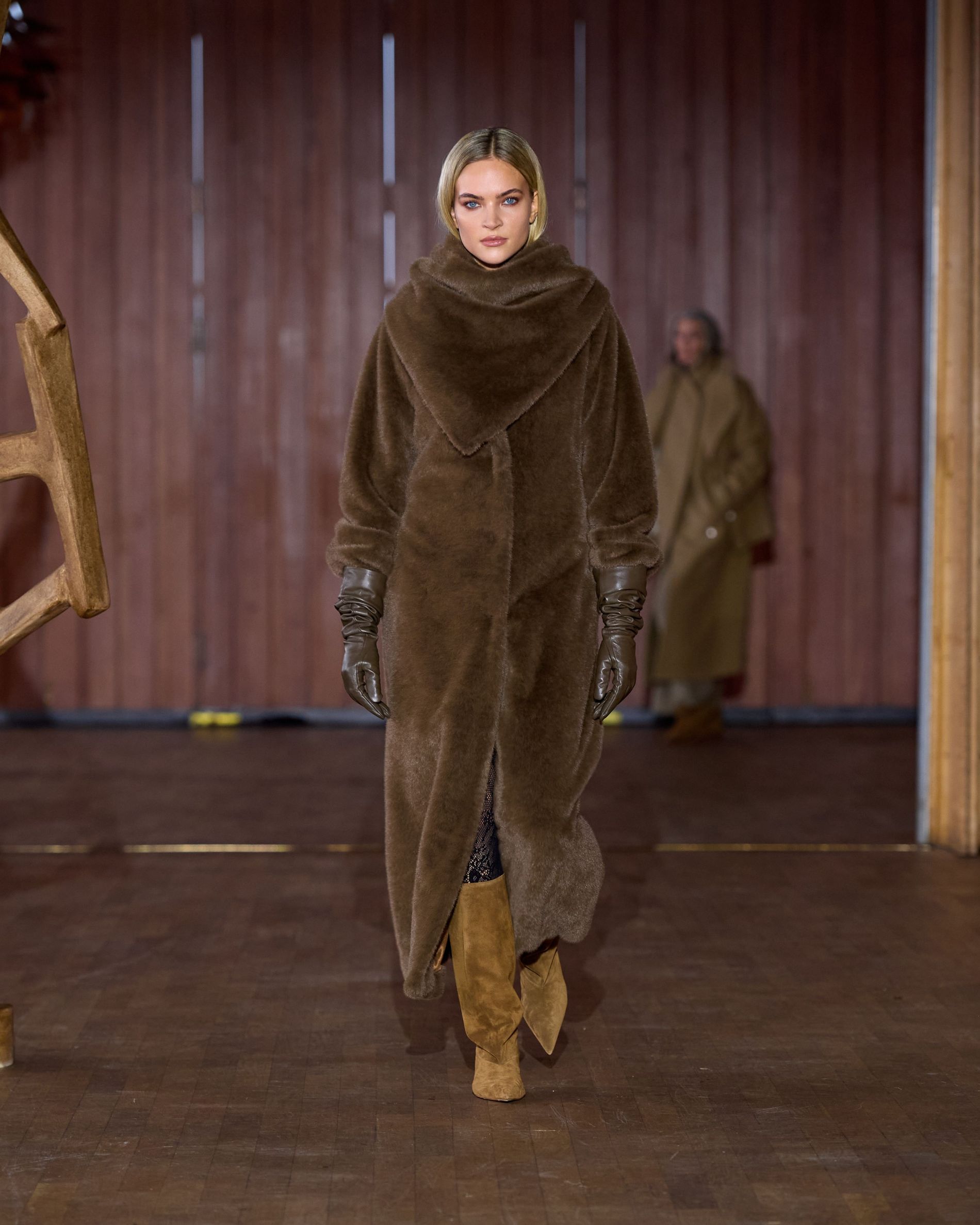 AW26 also marked The Garment’s debut into footwear – an eight-style capsule that translated the brand’s quiet femininity into shoes. Sculptural wide boots in croc-embossed calfskin sat alongside elegant kitten-heel pumps, butter-soft loafers, and printed calf-hair ballerinas – a study in balance between structure, softness, and ease.