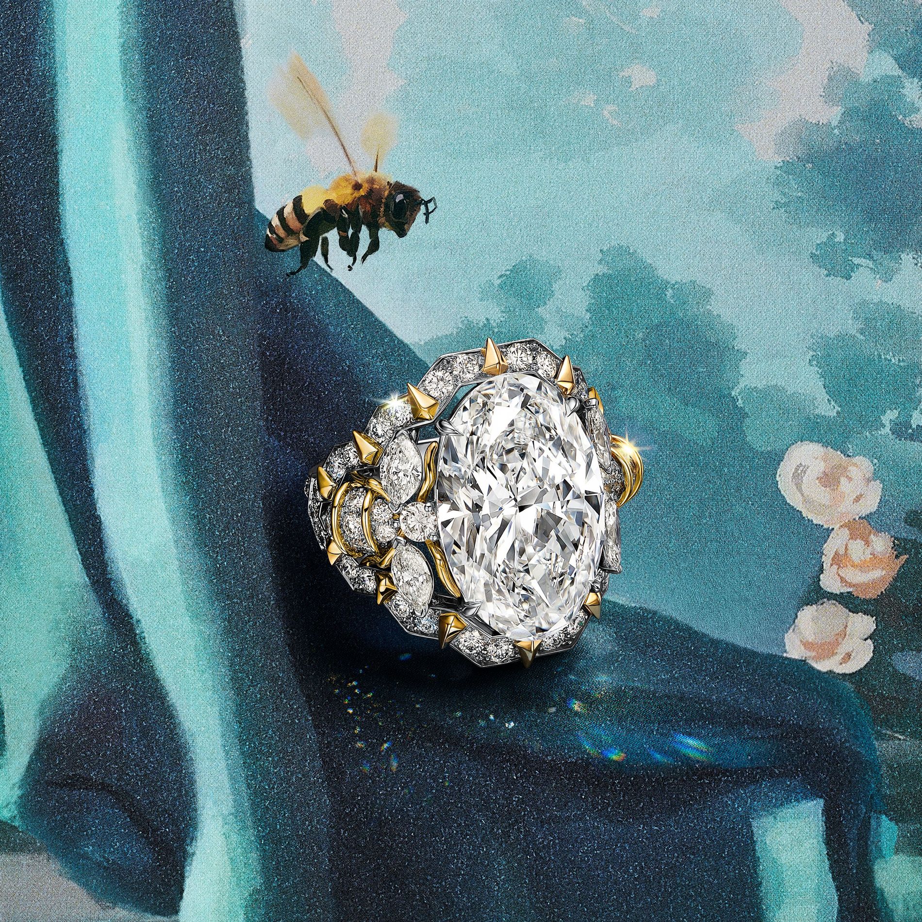 From The Bee: Ring in platinum and 18k yellow gold with a D-color, internally flawless, Type IIa, oval diamond of 10.17 carats and diamond accents. Photo: Tiffany & Co.