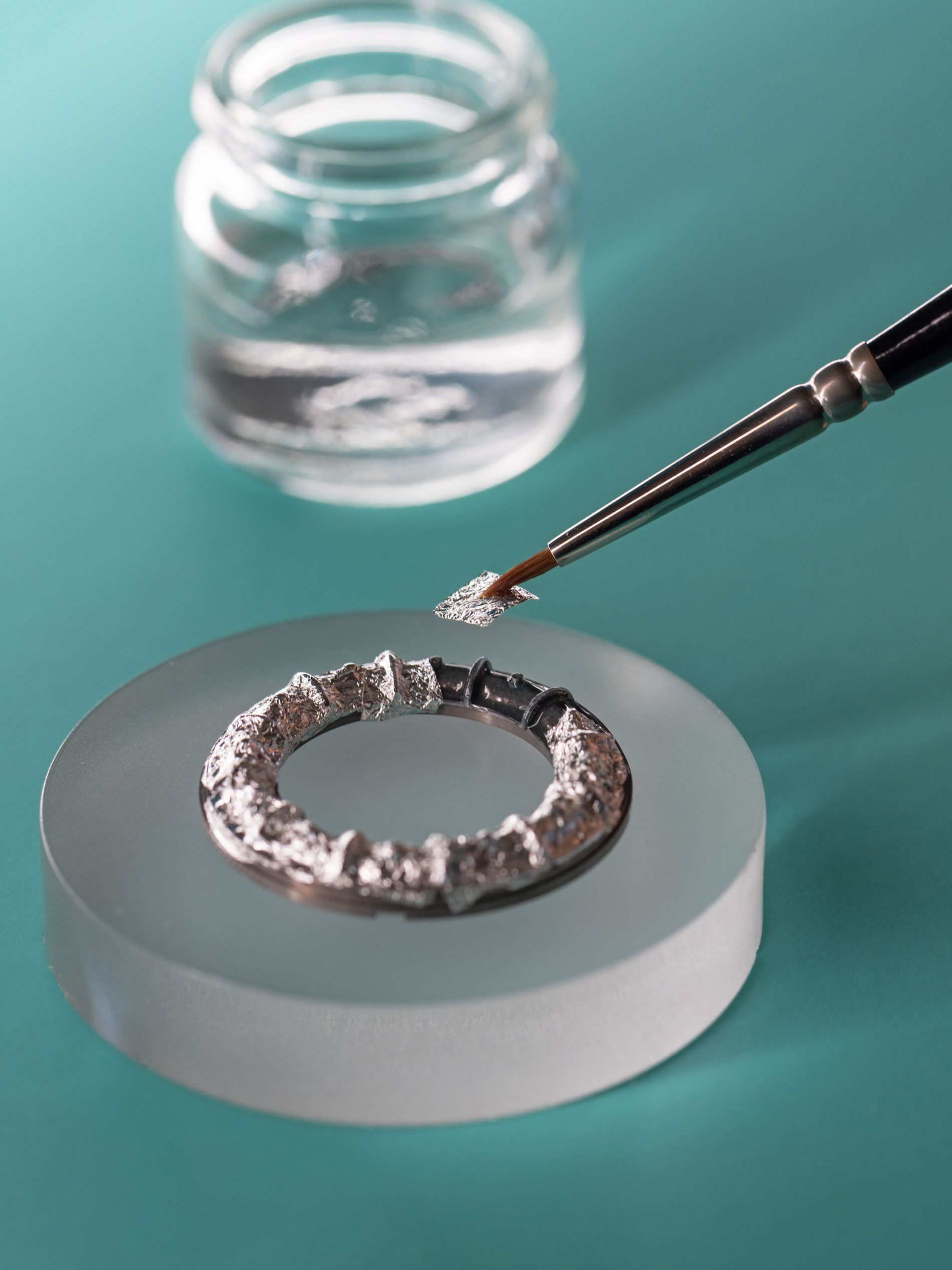 In a poignant homage to Schlumberger, the case back is artfully engraved with a sunburst pattern inspired by the creative's own Floral Arrows brooch, and is further embellished with 14 additional diamonds.