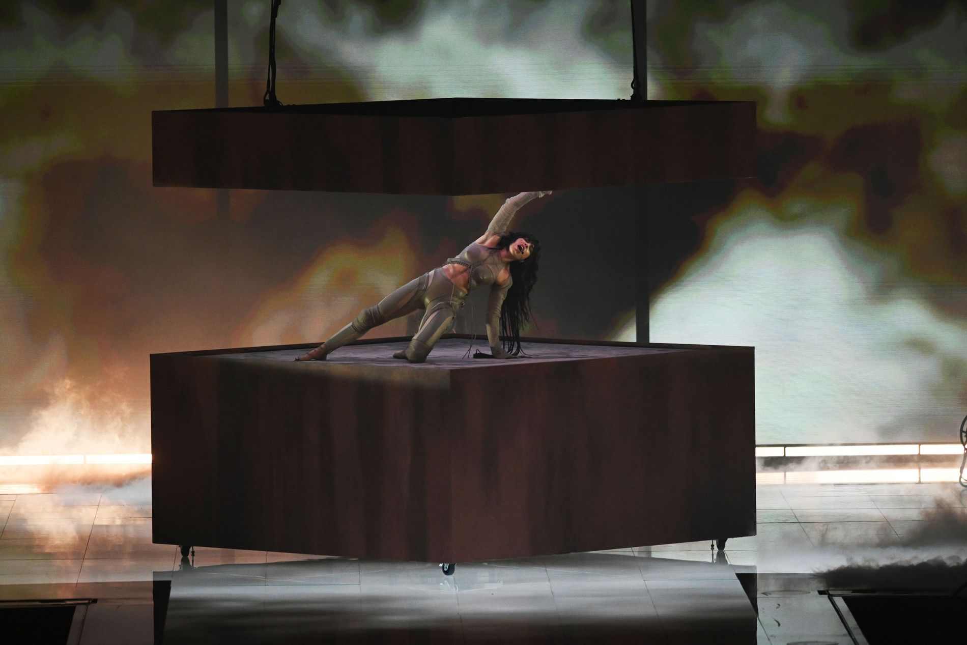 As Loreen explained in an exclusive chat with Vogue Scandinavia, the performance was very much inspired by nature and her Moroccan heritage. "There’s the sand, there’s the mist, there’s the smoke, there’s the wind, the sky, my nails are made out of stone." Rylander elaborates on this, touching on Loreen's nomadic character. "We knew from the start that we wanted to create a room or a world of her own on stage, to take people's minds off the bling and eye candy that is a Eurovision stage. We knew that we wanted a horizon and an eternal void, while also telling the story of Loreen's nomadic heritage."