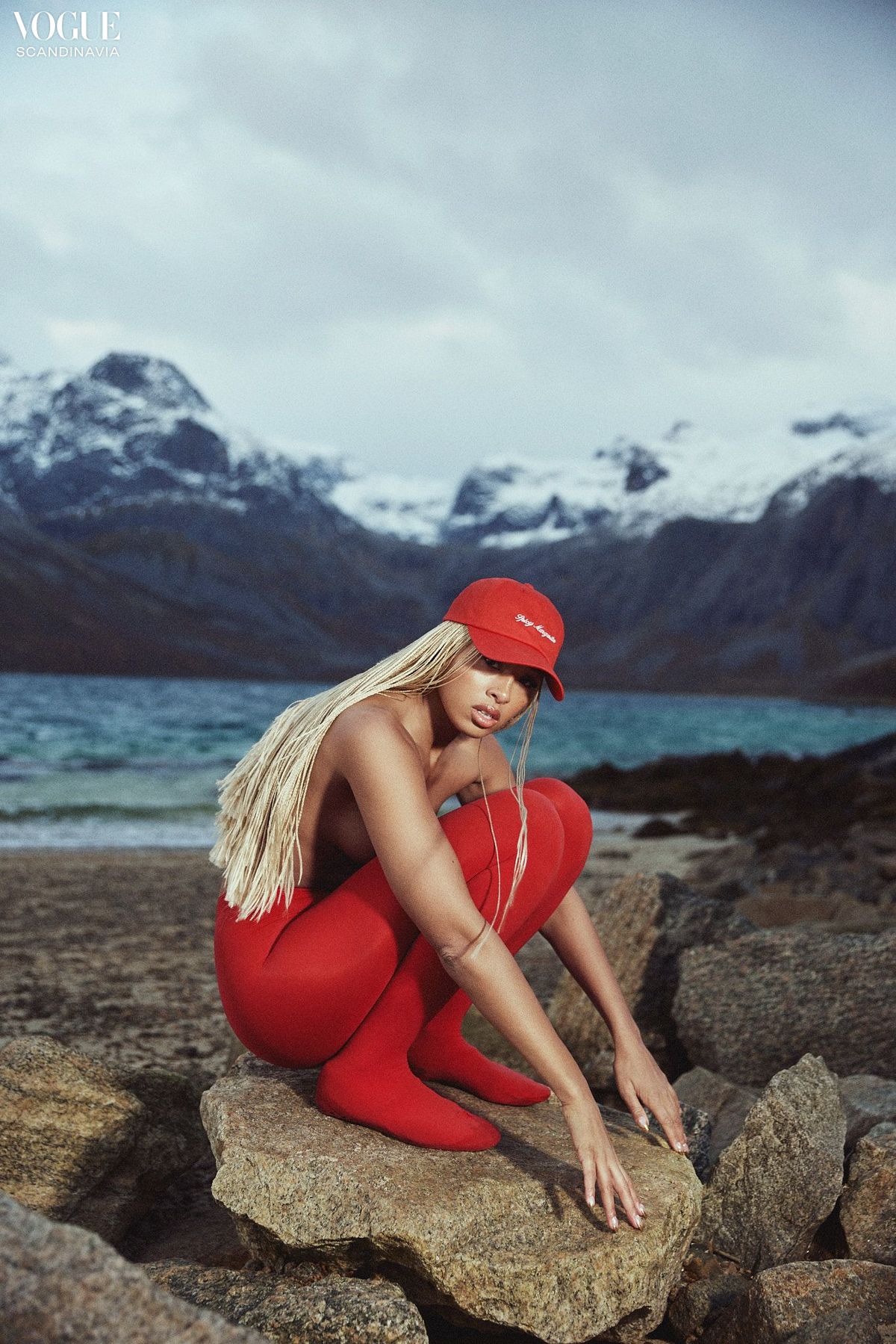 Tolou was discovered by legendary artist Wycleaf Jean whilst singing in a choir in her local church. Nylon stockings, €15. Sneaky Fox. Cap, €50. Den Dama. Photo: Ole Martin Halvorsen