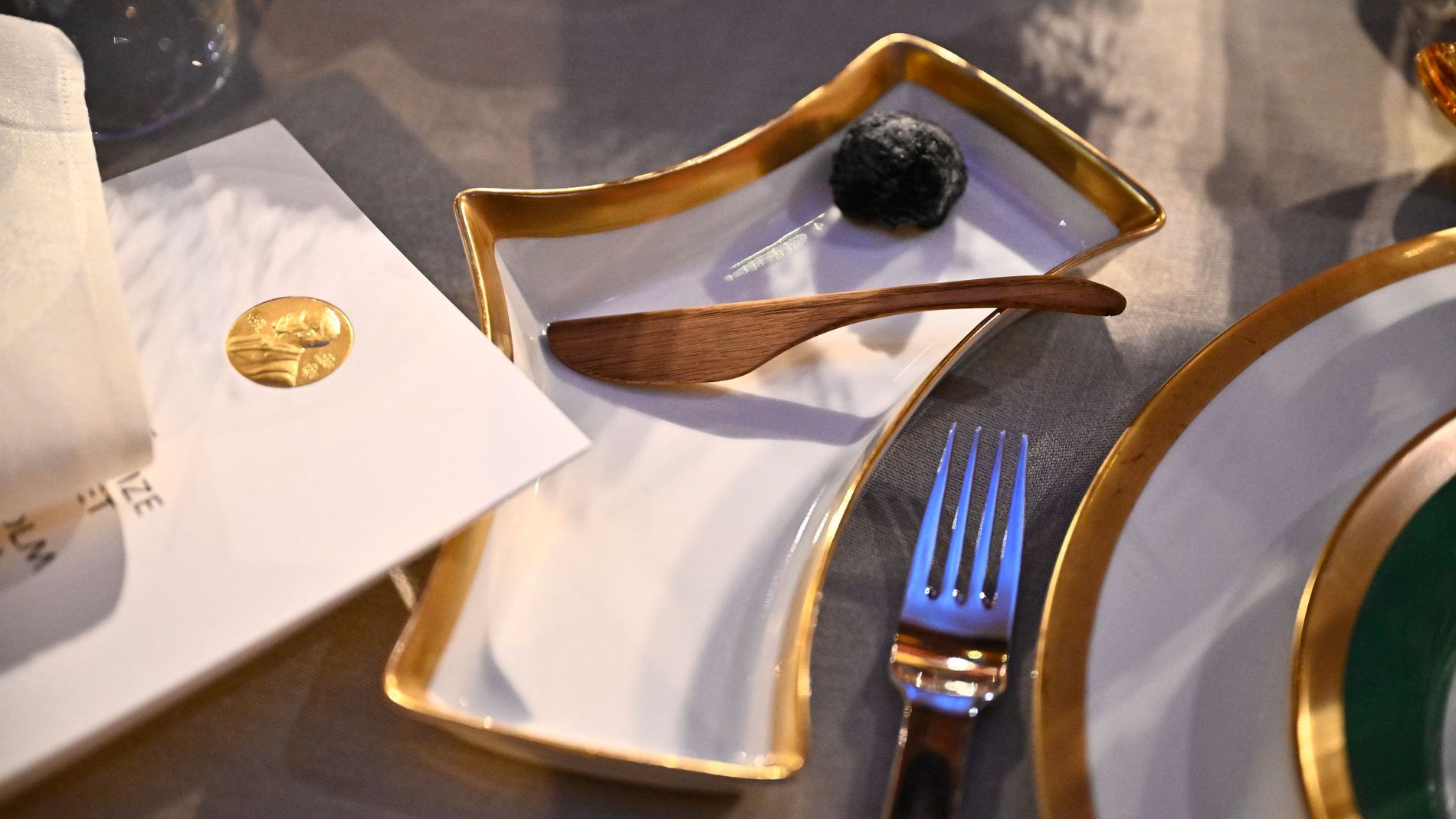 To that end, the starter did mark a first for the Nobel Banquet: the introduction of butter knives. It was a necessary add-on to the stunning table settings, as butter isn’t traditionally served. As a personal touch, the knives themselves were crafted by Le’s brother.