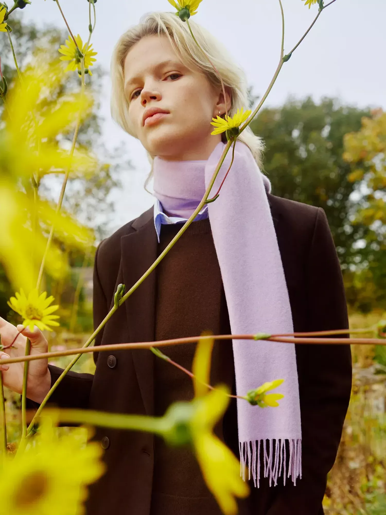 In these elevated new images, Vogue celebrates the Japanese brand’s latest collection of quality cashmere. The line-up offers a vast range of styles, including crew neck, turtleneck, V-neck and half-zip. A sense of vibrant colour is at the core of the new line, which offers both men’s and women’s pieces in more than 30 different options. From natural, soft, classic shades to beautiful powder brights and deep, rich tones, there is a shade for everyone and every style. Those who favour a bolder, more colourful wardrobe might opt for the baby blue, salmon pink, or plum-purple offerings, while others with a more minimalist sense of style might be inclined to go for greys, creams and browns. “It’s such a beautiful palette to pick so many different shades from,” says Waight Keller, who personally tends towards dark, earthy colours.