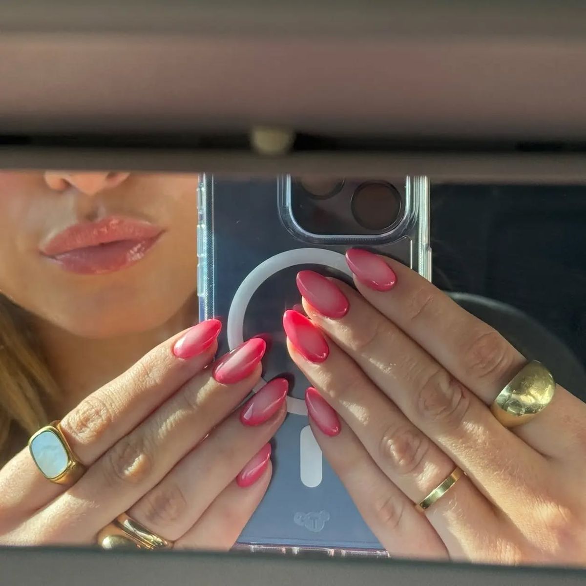 Flirty, fun, and fresh, aura nails are an easy way to lean into nail art without being too obvious. For Valentine's ready manicure, select shades of pink or red, layer and go. Our pro tip for beginners: use eyeshadow to create the aura.