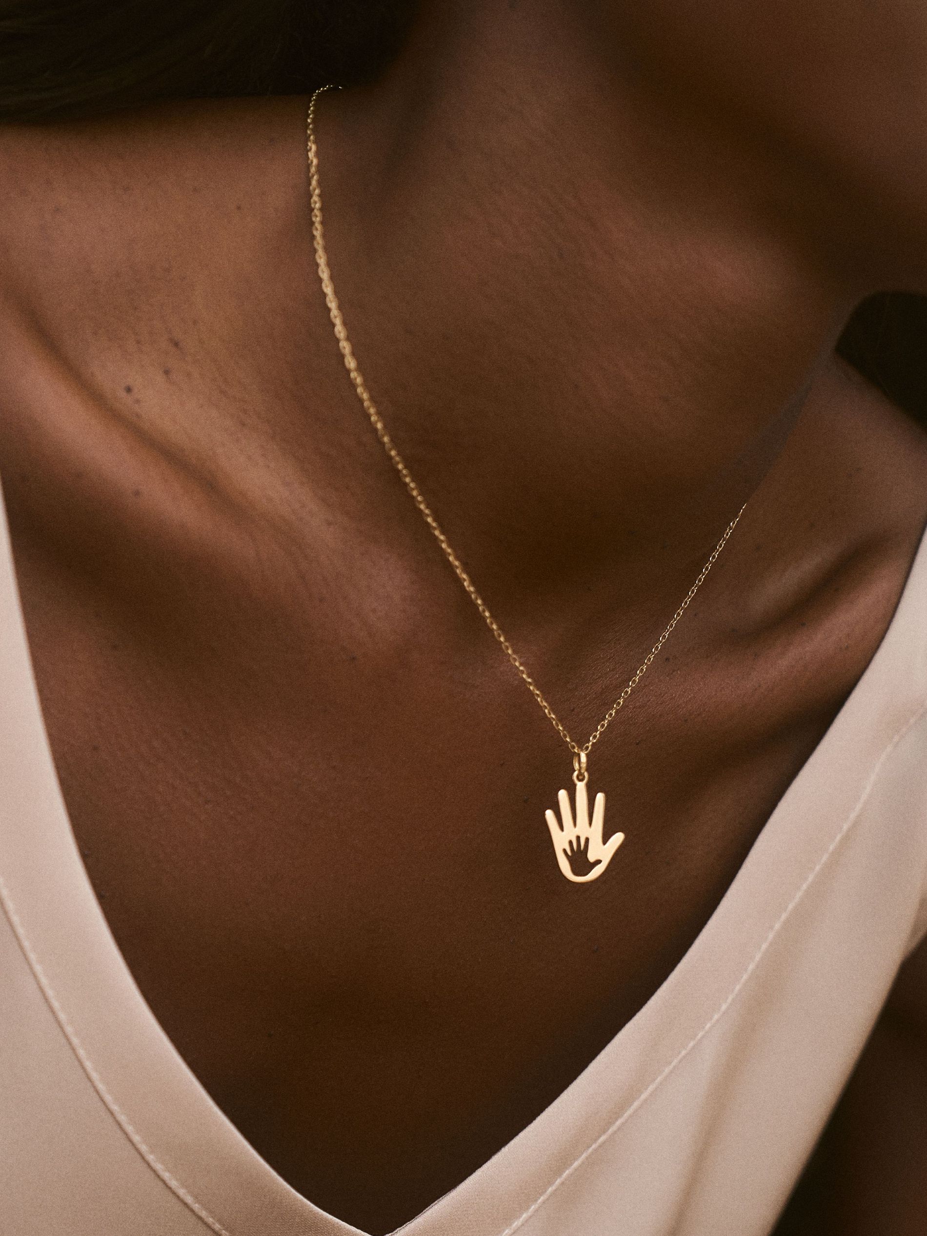At the collection's heart, however, is the delicate 'Hand in Hand' necklace, depicting a child’s hand held safely within an adult’s – a powerful symbol of closeness, trust and care. Alongside chains available in 18 carat white, yellow, or rose gold, as well as 950 platinum, the charms can be worn individually or combined to create a wholly personal statement.