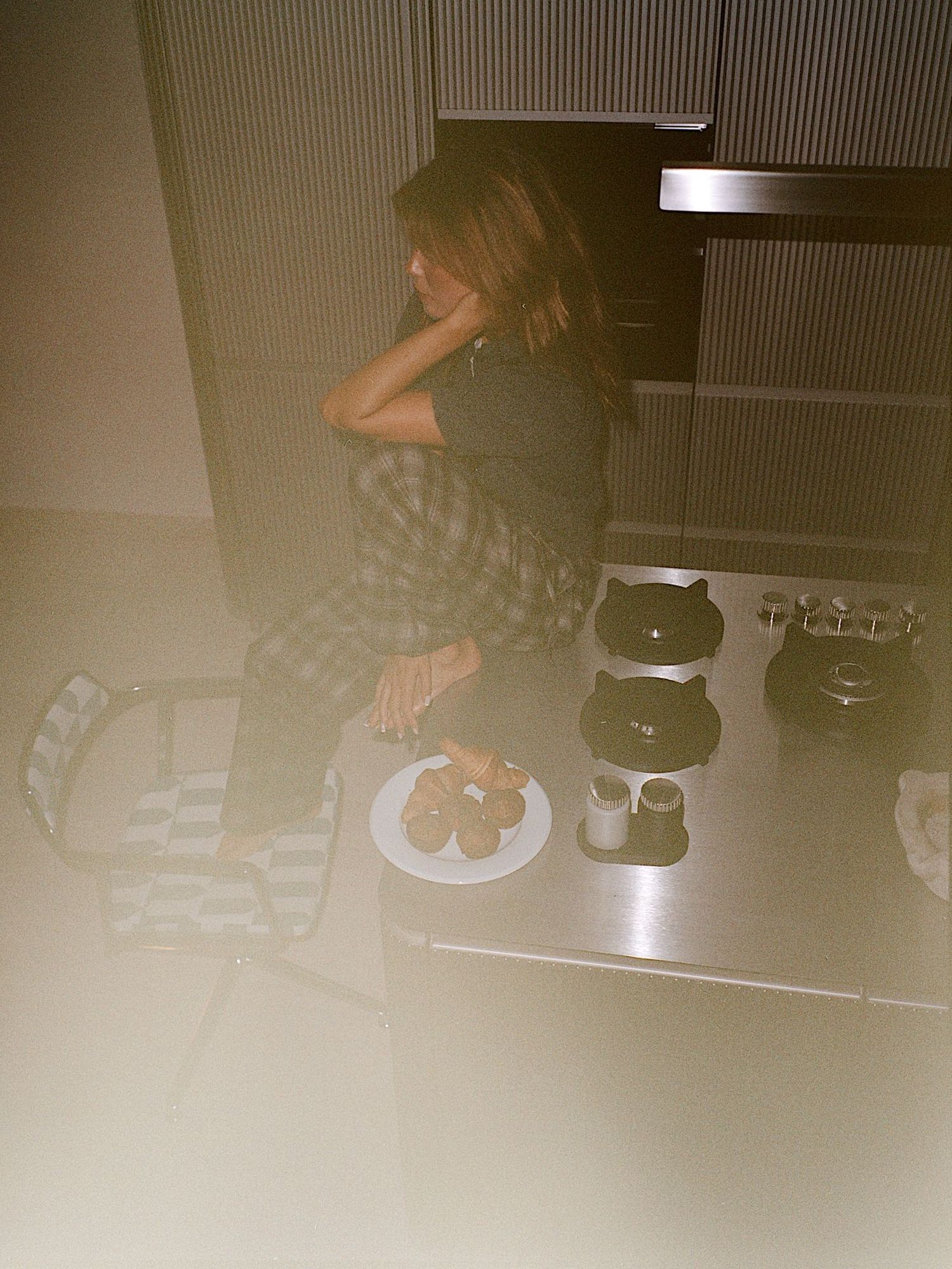 A devoted admirer of Vipp, Karberg even has her own ‘Swivel’ chair that graces the bedroom of her Copenhagen abode. Visiting the Lagrasse townhouse, she was struck by “how naturally the Vipp kitchen and furniture blended into the historic setting, as if they had always belonged there,” marvelling at the way the house’s nostalgic, cosy feel harmonised with the design that “felt incredibly Scandinavian and contemporary.” As for her favourite nook of the place? “The Vipp kitchen, without a doubt,” she says. “Even though we aren’t exactly professional chefs, this kitchen made us want to cook and experiment. The sleek aluminum cabinets paired with the raw, old brick walls created such a unique vibe. It was the perfect example of old meeting new, and it truly became the heart of our stay – a place where we gathered, talked, and shared meals.”
