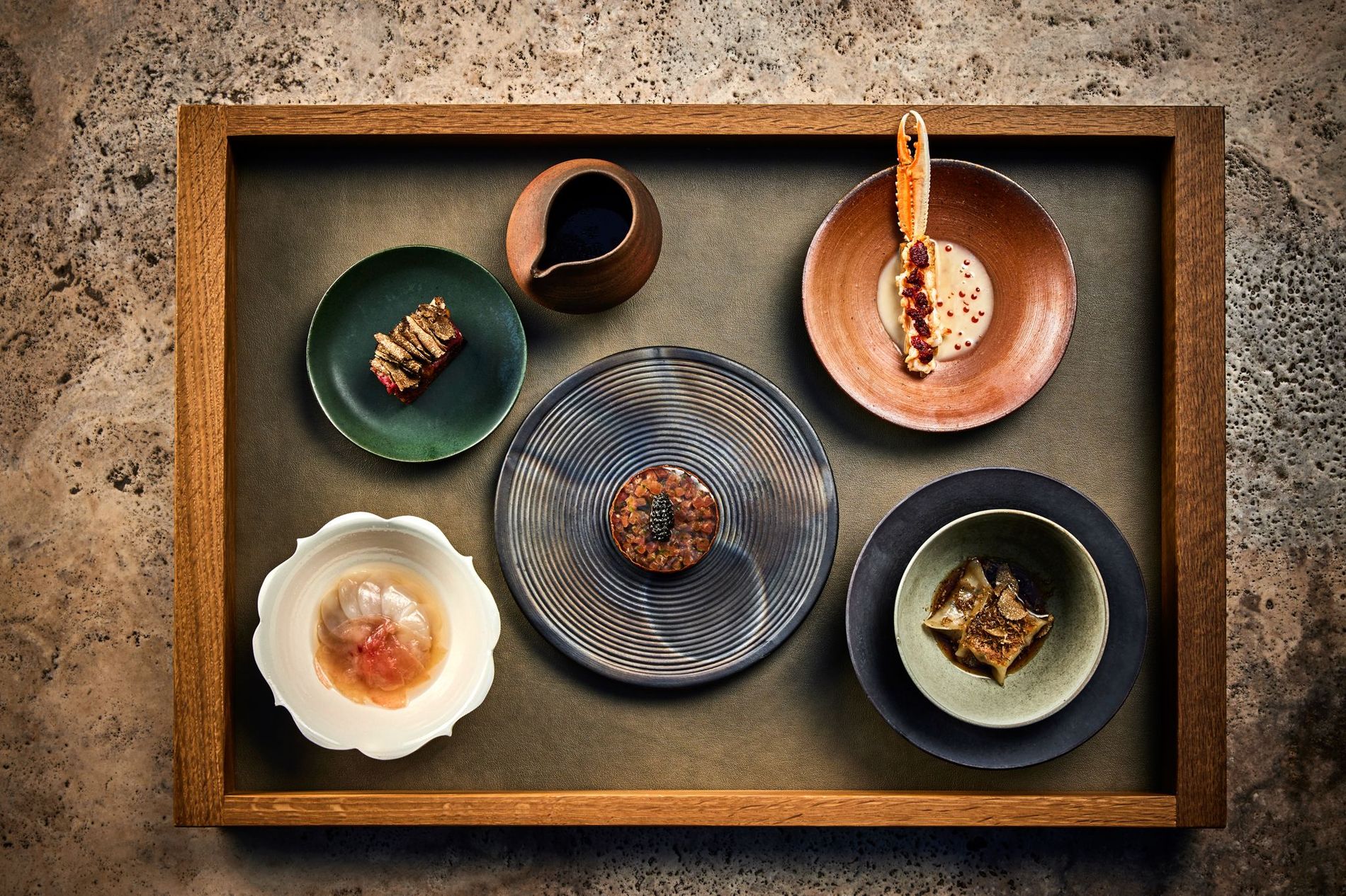 HeJi, the new-to-the-scene asian fusion Mecca is steeped in unapologetic, over-the-top decadence. It took five years to reconstruct (and made its way into the Michelin guide just four months after opening its doors) and it shows. Hand-painted walls, hand-carved wood, extraordinary mosaics, flourishes of gold, cinematic staircases – everything about HeJi is deliciously grand making every visit an instant occasion (the interiors are courtesy of renowned Ukrainian designer Kateryna Mardanova of Mardanova Design).