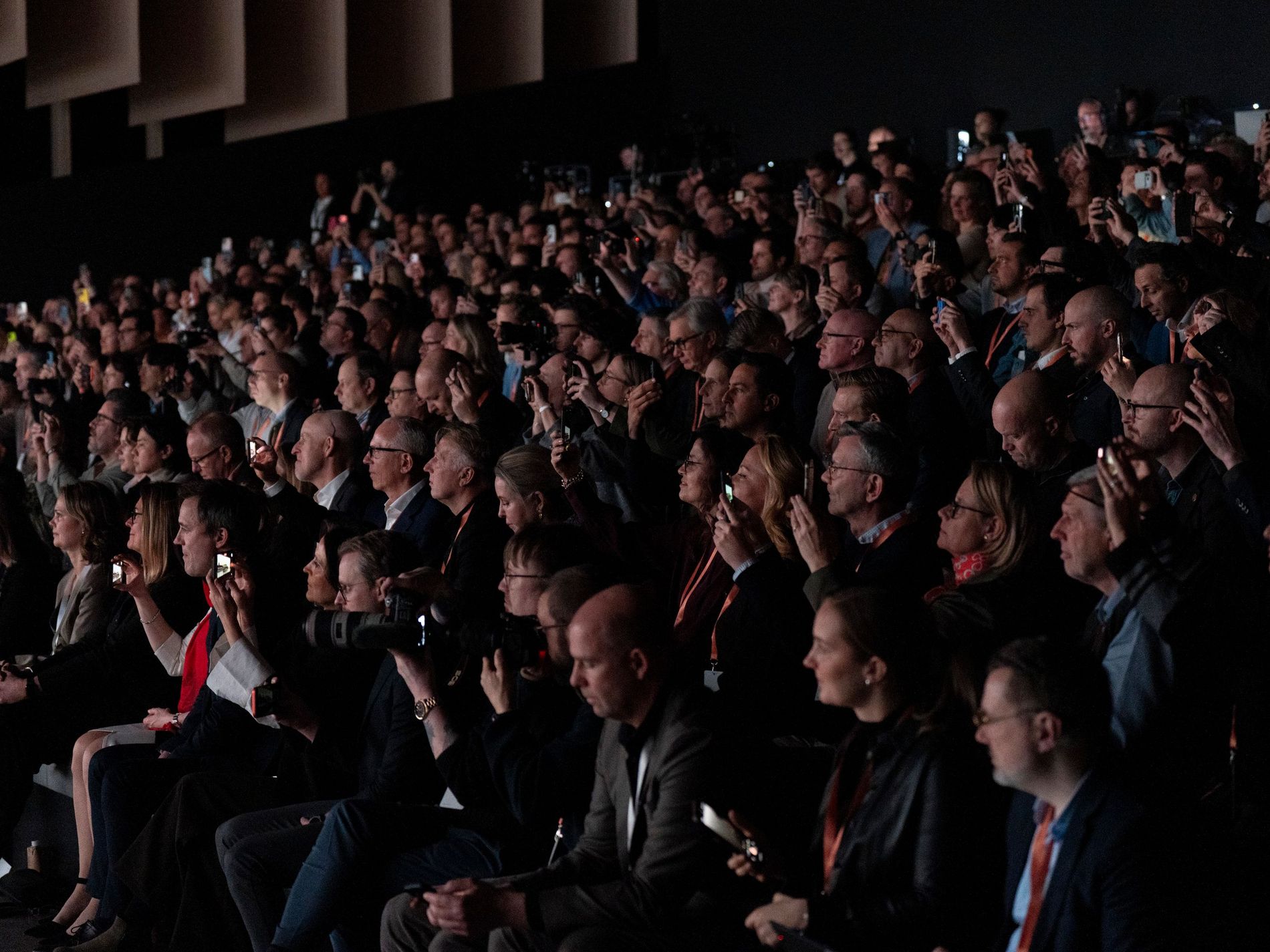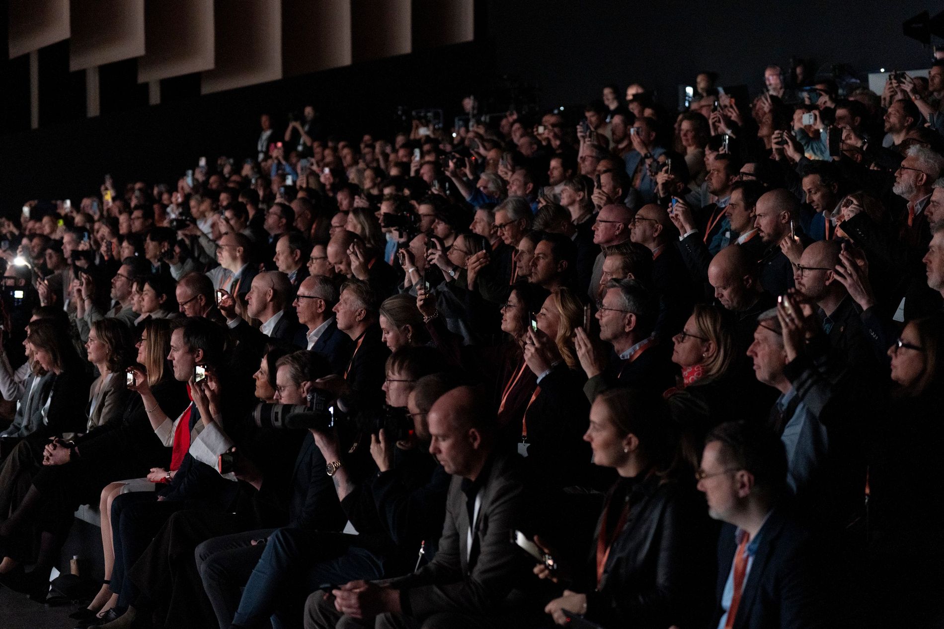 A packed audience at Artipelag witnesses Volvo Cars unveil the fully electric EX60 to the world. Photo: Courtesy of Volvo