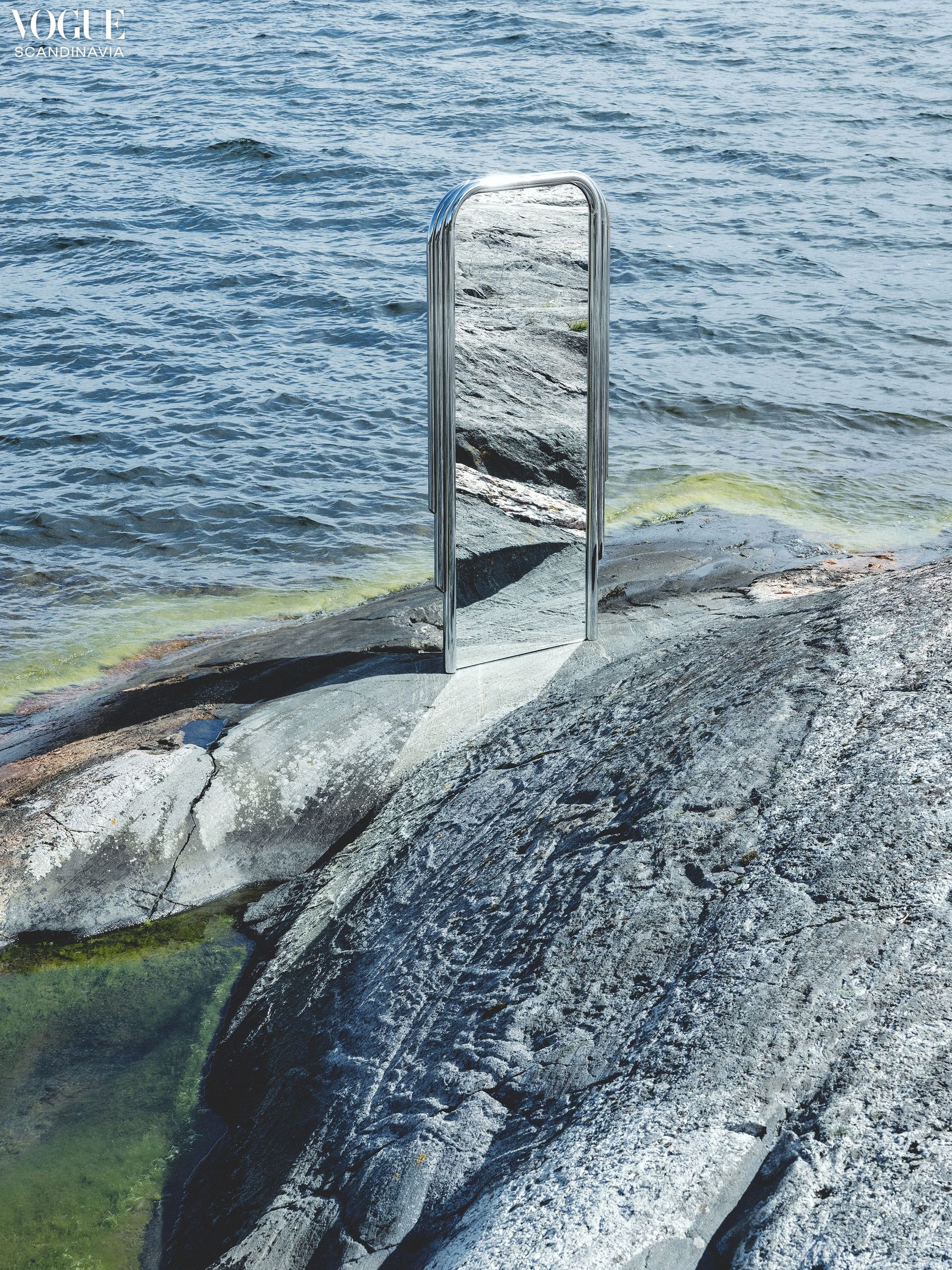 For Lachance, precision can be achieved at all volumes. If the launch party was about community and revelry, this shoot for Vogue Scandinavia was its counterpoint of stillness and clarity. Shot across the Stockholm archipelago by Marco van Rijt, Westwing’s covetable pieces emerged as sculptures in their own right. A table becomes monolithic when set against windswept granite; a lamp, totemic in a forest clearing. Chair legs are gently bathed in the tide, glass mirrors the fleeting reflections of the sky. “These pieces aren’t just placed outdoors – they become part of the landscape, almost like characters within it,” van Rijt comments. “There is a dialogue between object and environment that I wanted to preserve.”