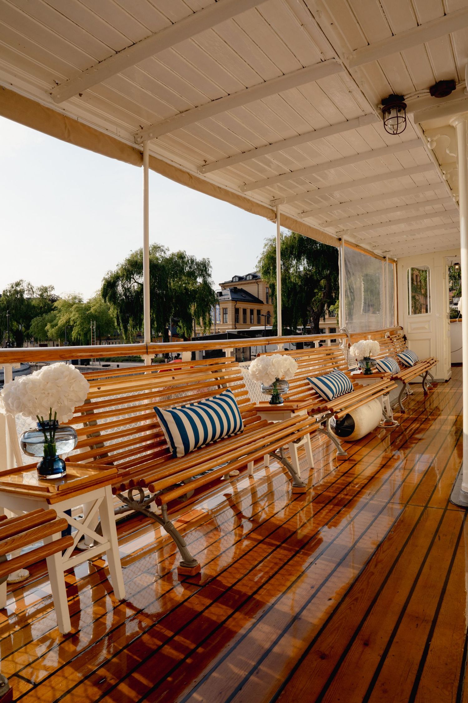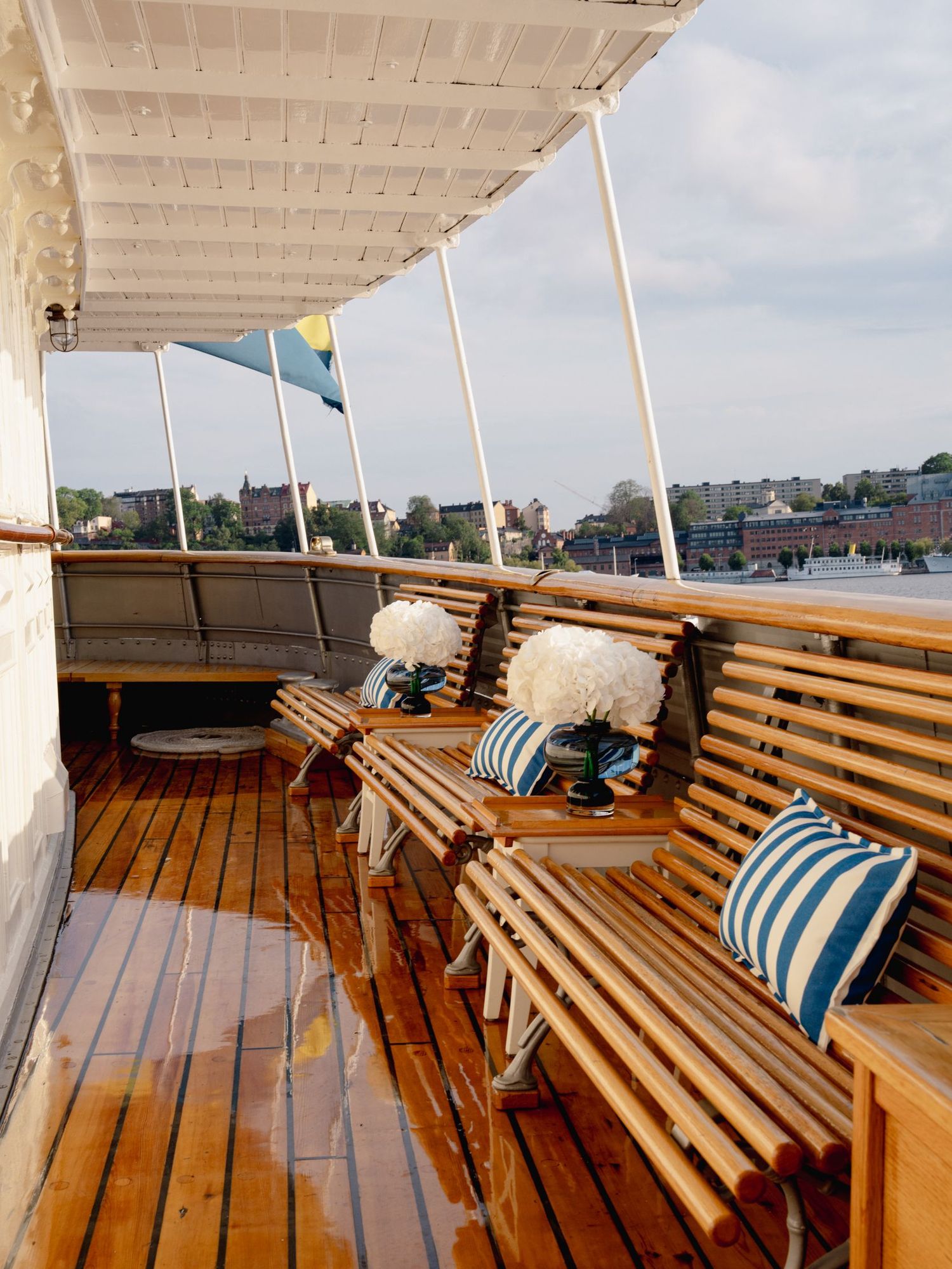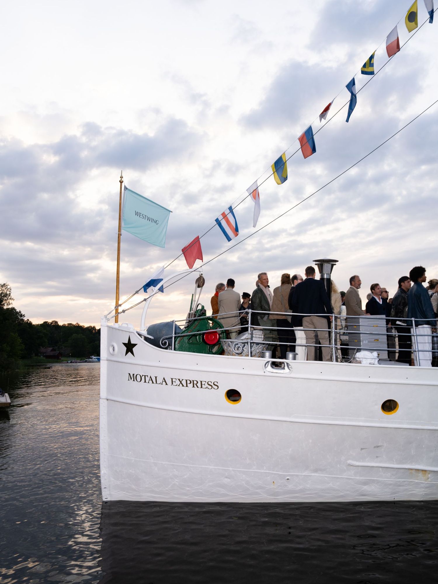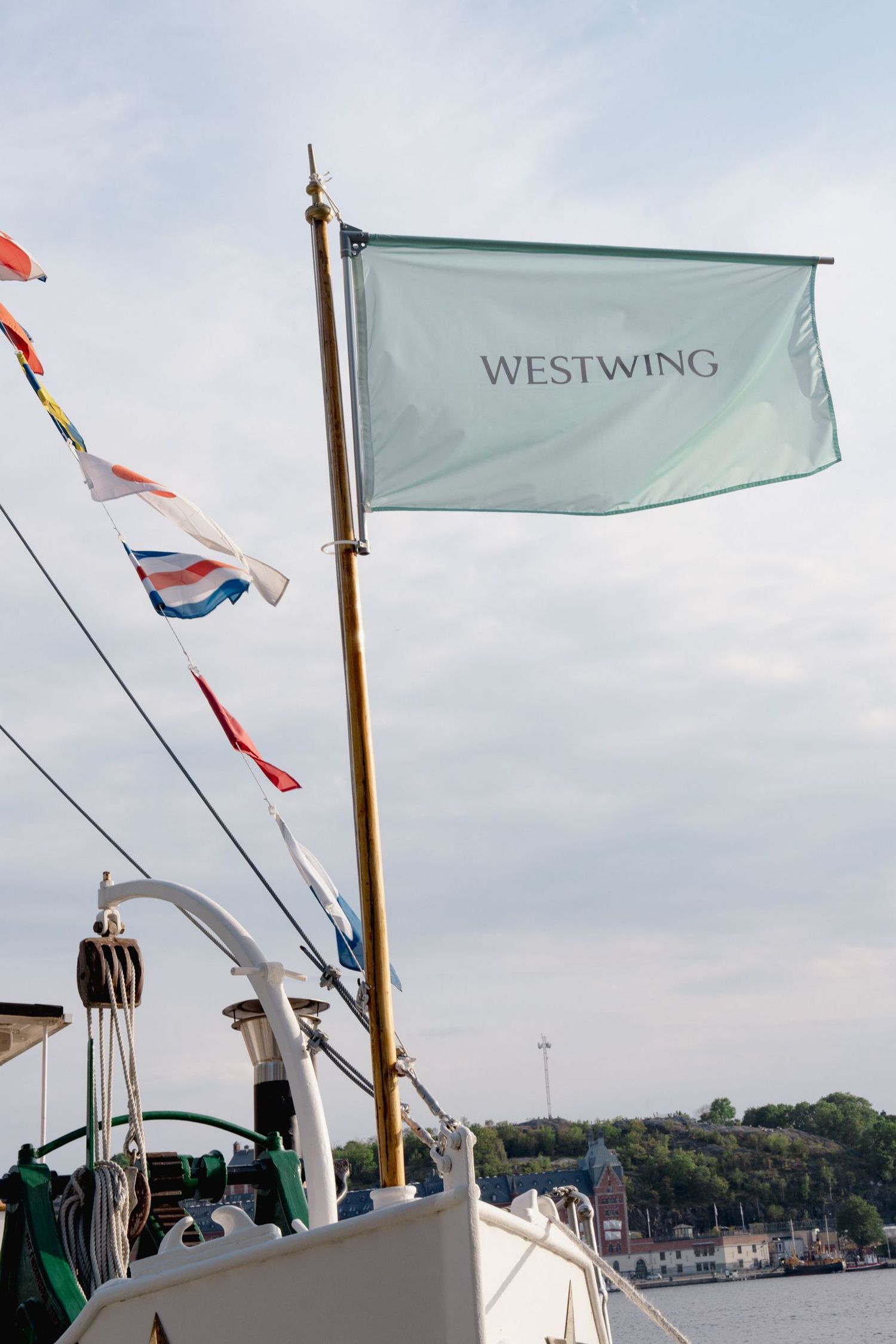 As a well-heeled crowd cruised out of Stockholm on a boat towards the Westwing Villa last week, the caption blared the horn more than a few times – not just signalling our imminent arrival, but sounding like a fanfare for Westwing's own arrival in Scandinavia. Guests clinked cocktails concocted in Westwing's signature teal blue hue, coordinating with the brand flag waving at the boat's bow. Decked out with striped bolster cushions and clusters of white hydrangeas, the boat indicated a stylish affair already well underway. Docking at its destination with a cheer from those on-board, we spilled out onto the expansive lawns that lead to the Swedish manor house, taken over by Westwing as its own villa for the evening.
