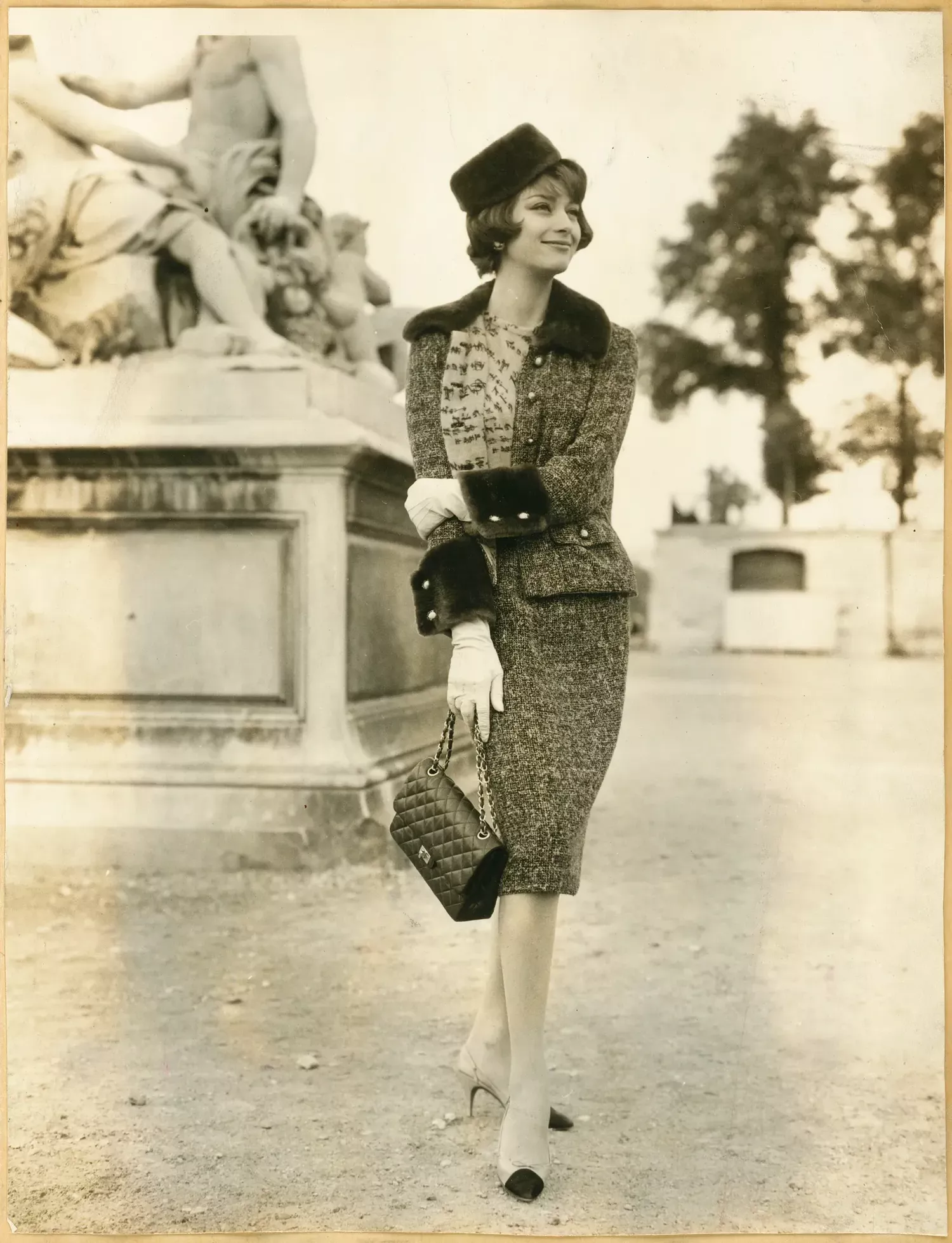 Chanel house model Marie-Hélène Arnaud in a Chanel tweed suit from the autumn/winter 1959 collection. © CHANEL . Photo: Chanel