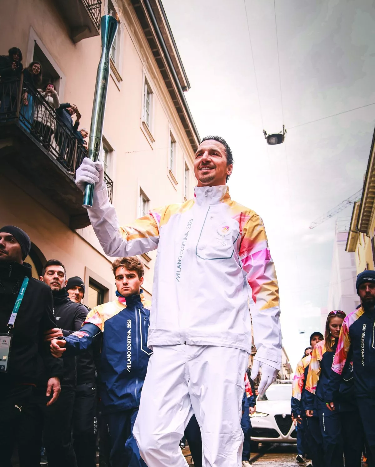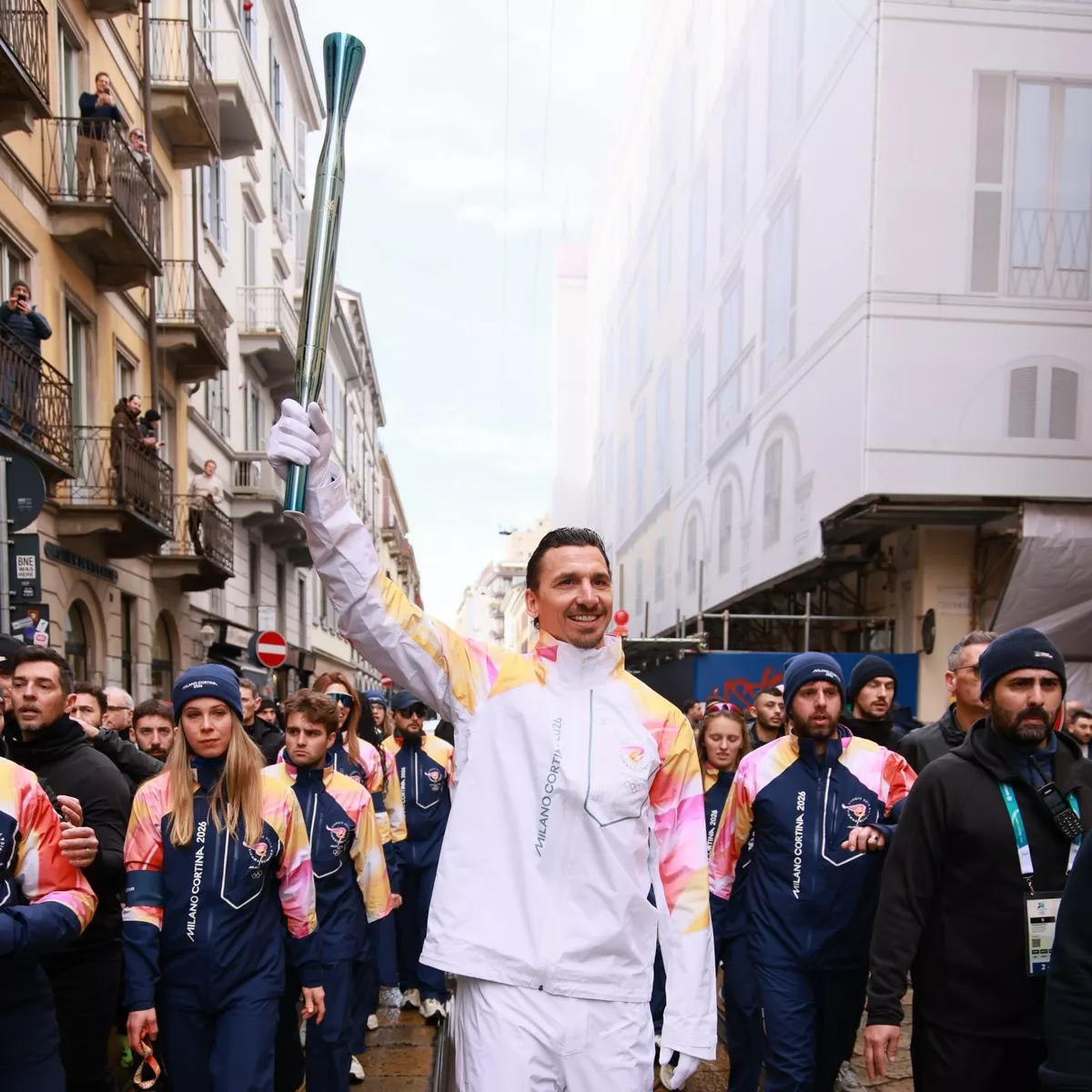 Swedish former footballer Zlatan Ibrahimovic held the Olympic torch high, walking through Milan