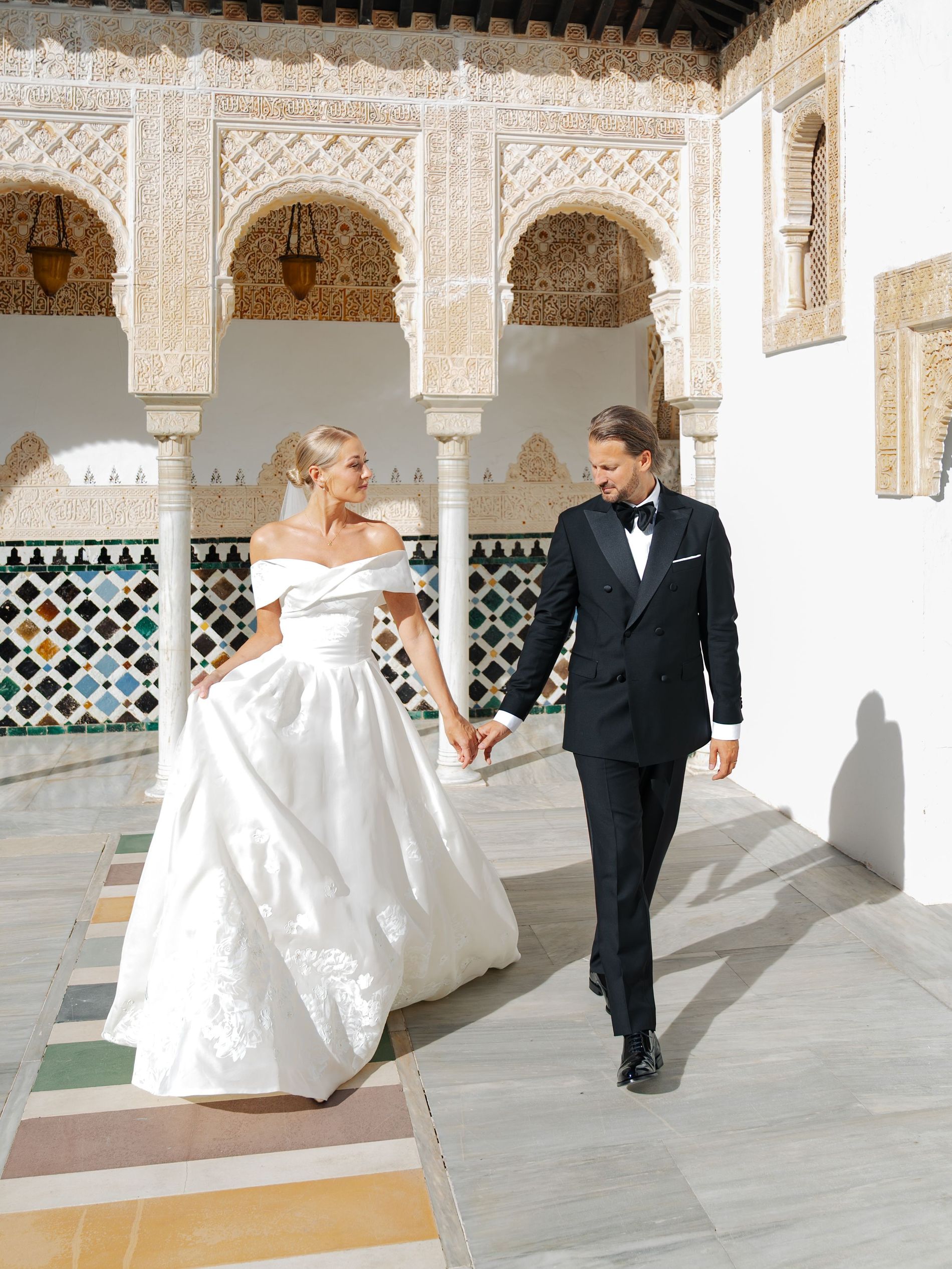 The bride wore a custom Scandi creation for her Sweden-meets-LA wedding celebrations